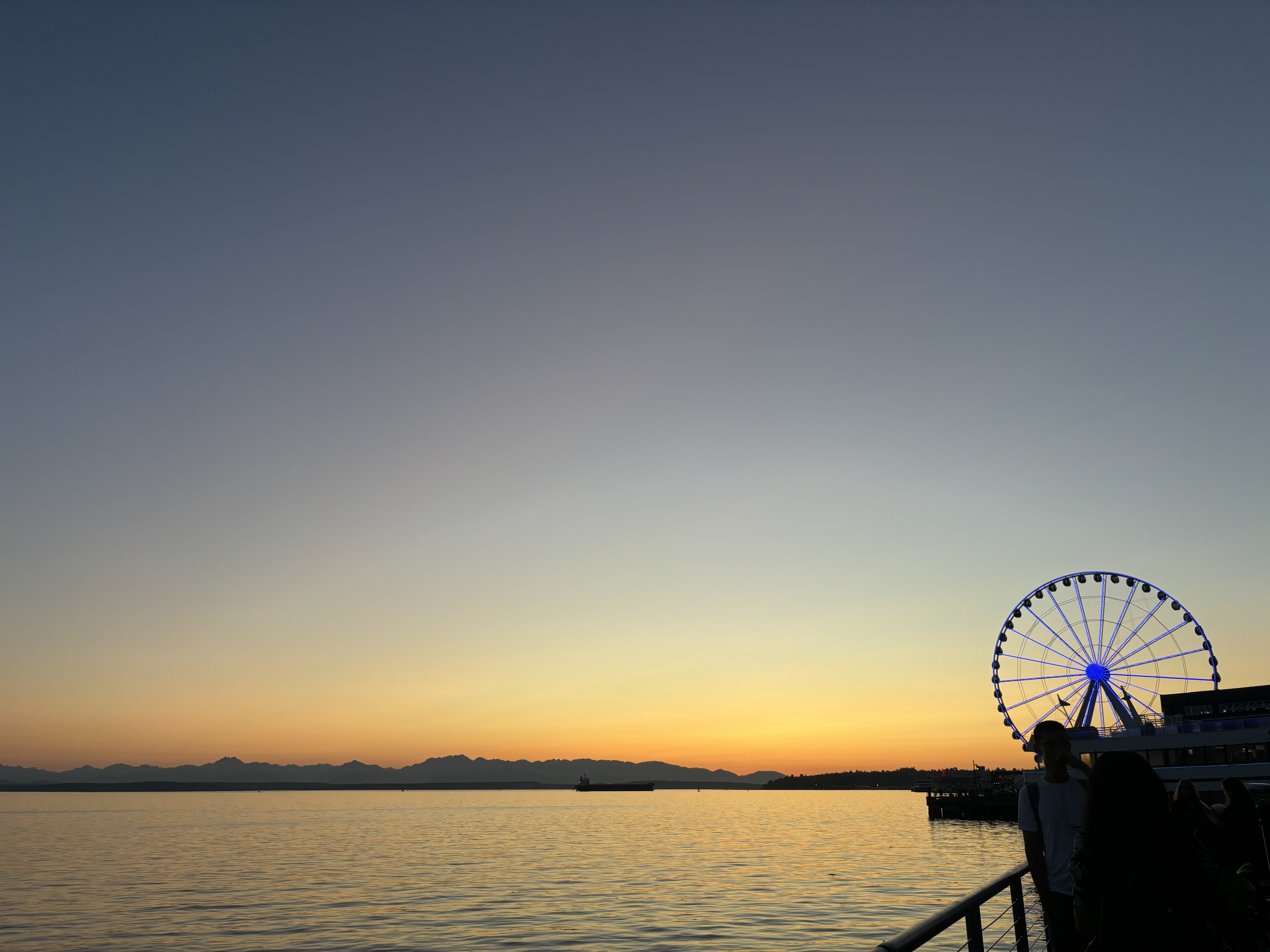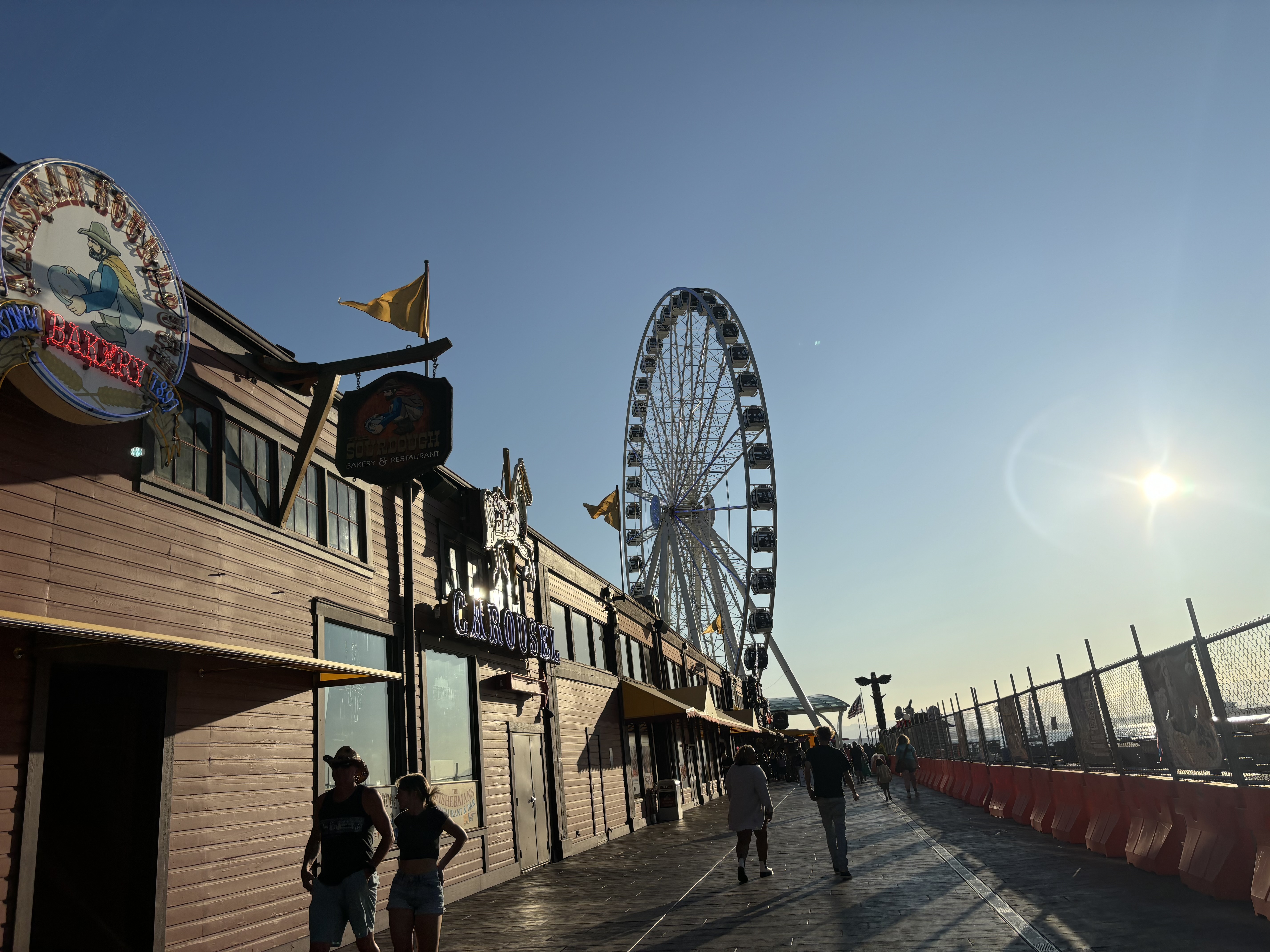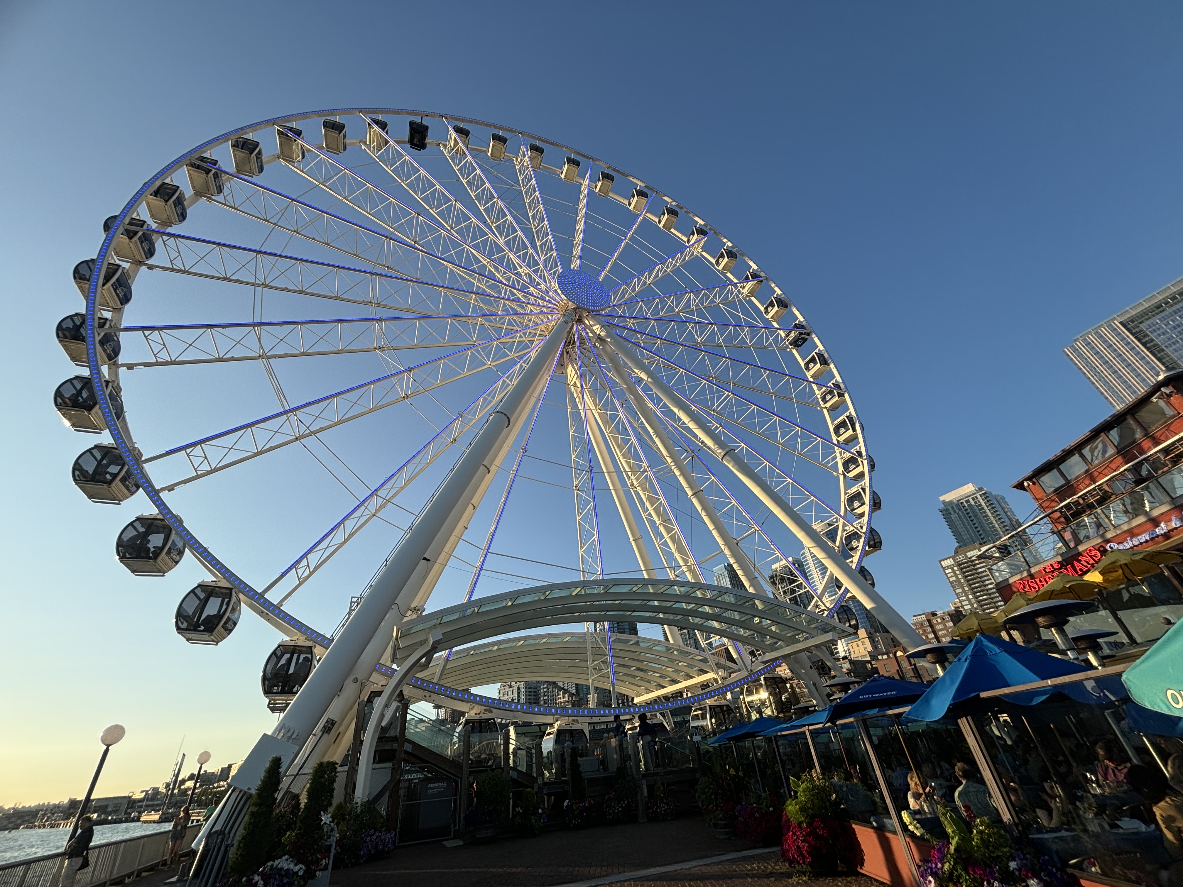 After getting settled in we wandered into town and went to Pier 57: Miner’s Landing and explored the shops. Then we rode The Seattle Great Wheel. If you know anything about me you know I am terrified of heights and ferris wheels. However, I sucked it up and got on and I am so glad I did. We ended up riding at sunset and got to see the sun dip into the mountains from the top. The view of Mt. Rainier was also amazing!