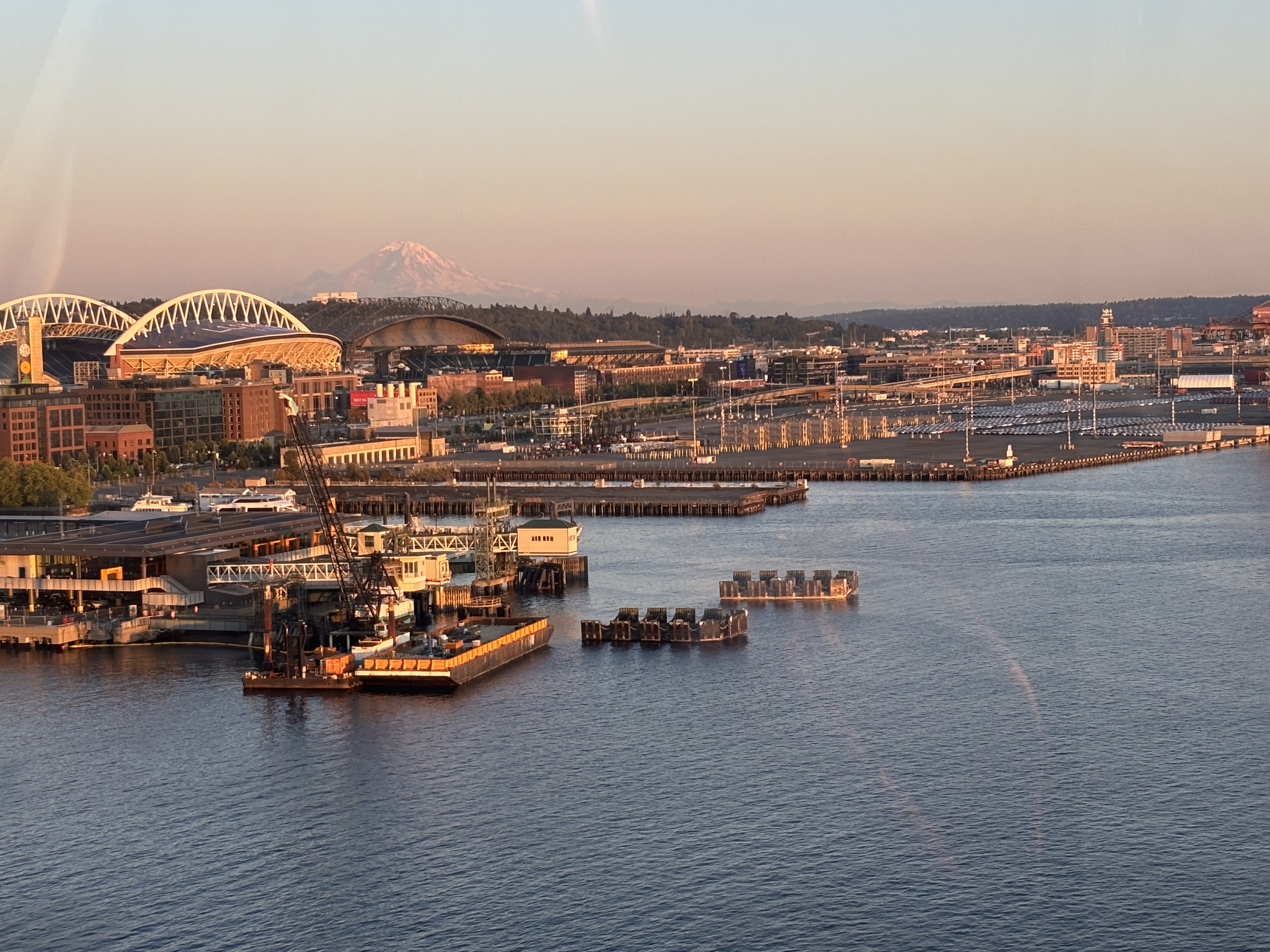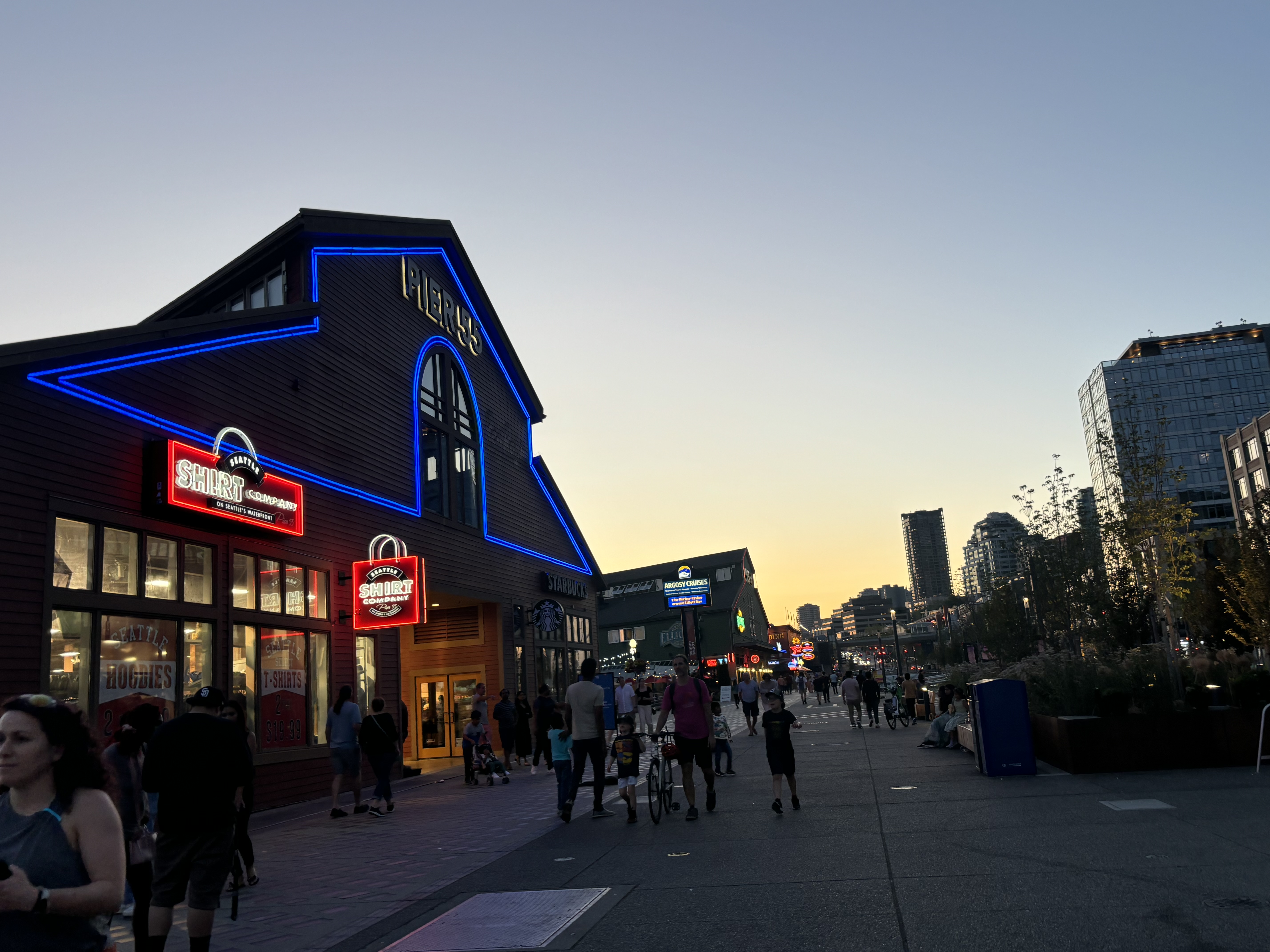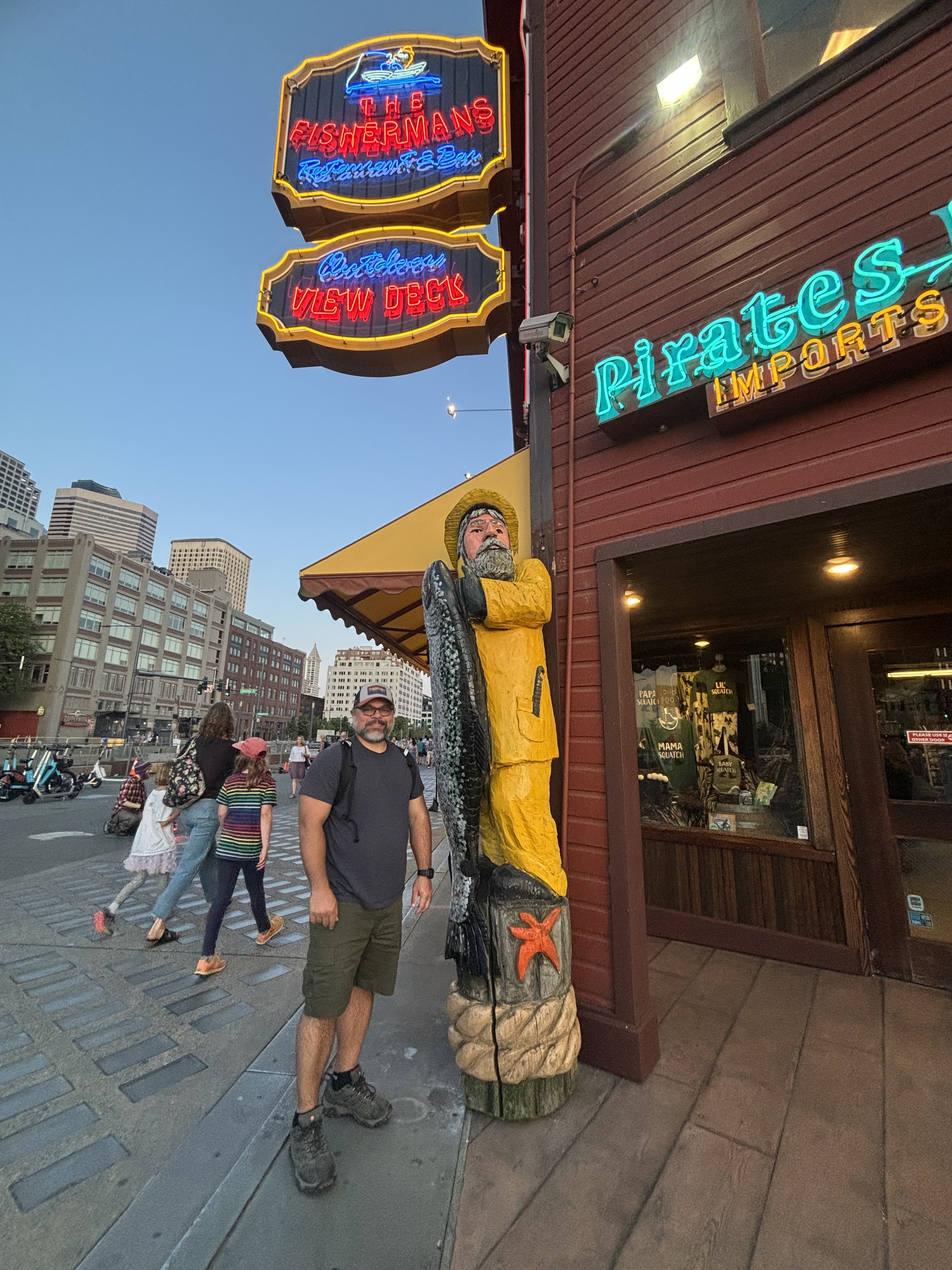 After getting settled in we wandered into town and went to Pier 57: Miner’s Landing and explored the shops. Then we rode The Seattle Great Wheel. If you know anything about me you know I am terrified of heights and ferris wheels. However, I sucked it up and got on and I am so glad I did. We ended up riding at sunset and got to see the sun dip into the mountains from the top. The view of Mt. Rainier was also amazing!
