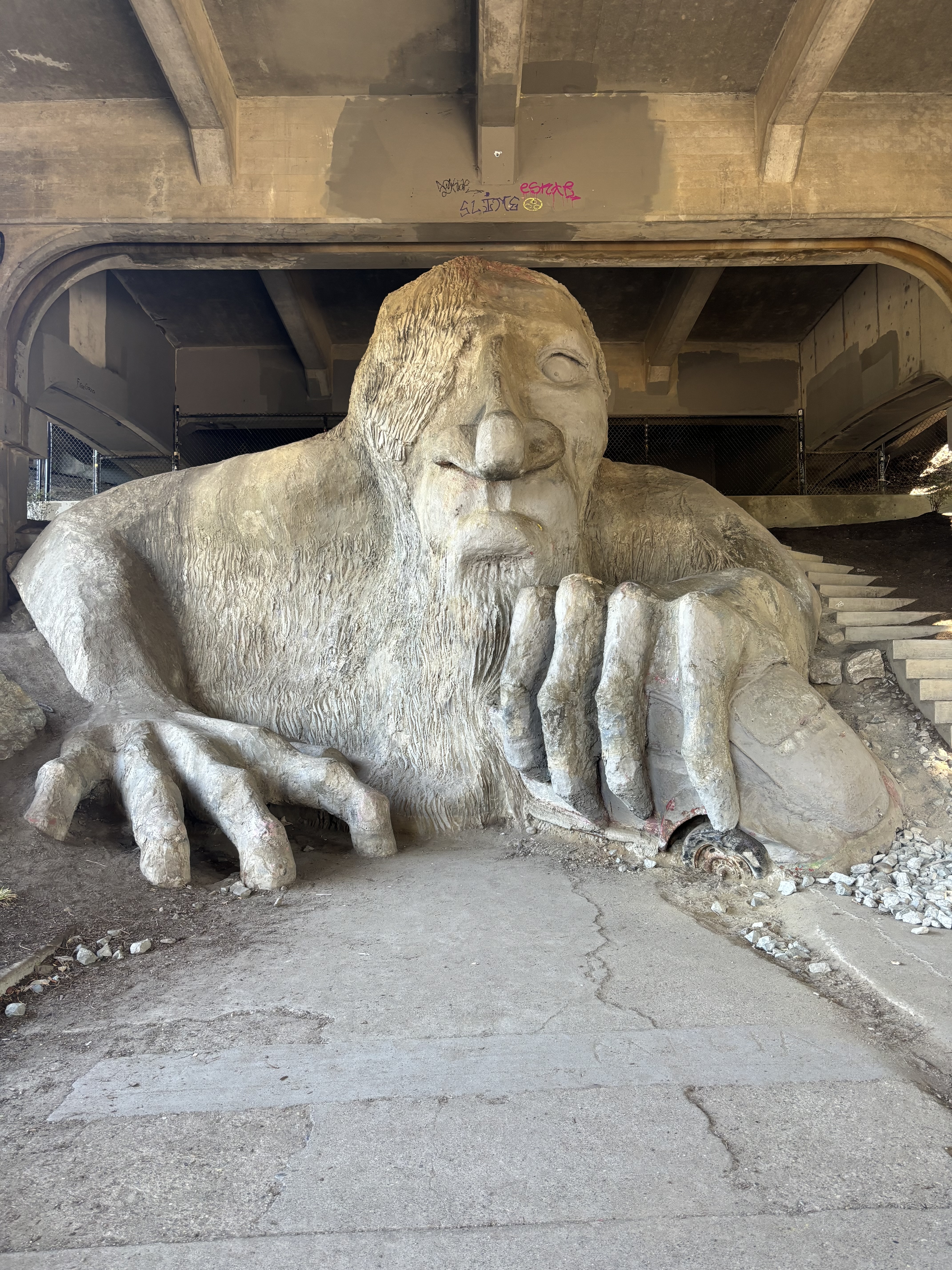 We woke up early on Saturday because we had a big day planned. Our first stop was to see the Fremont Troll. You may recognize this creature from movies like Twilight and 10 Things I Hate About You. I didn’t tell anyone about it , so it was a surprise when we pulled up.