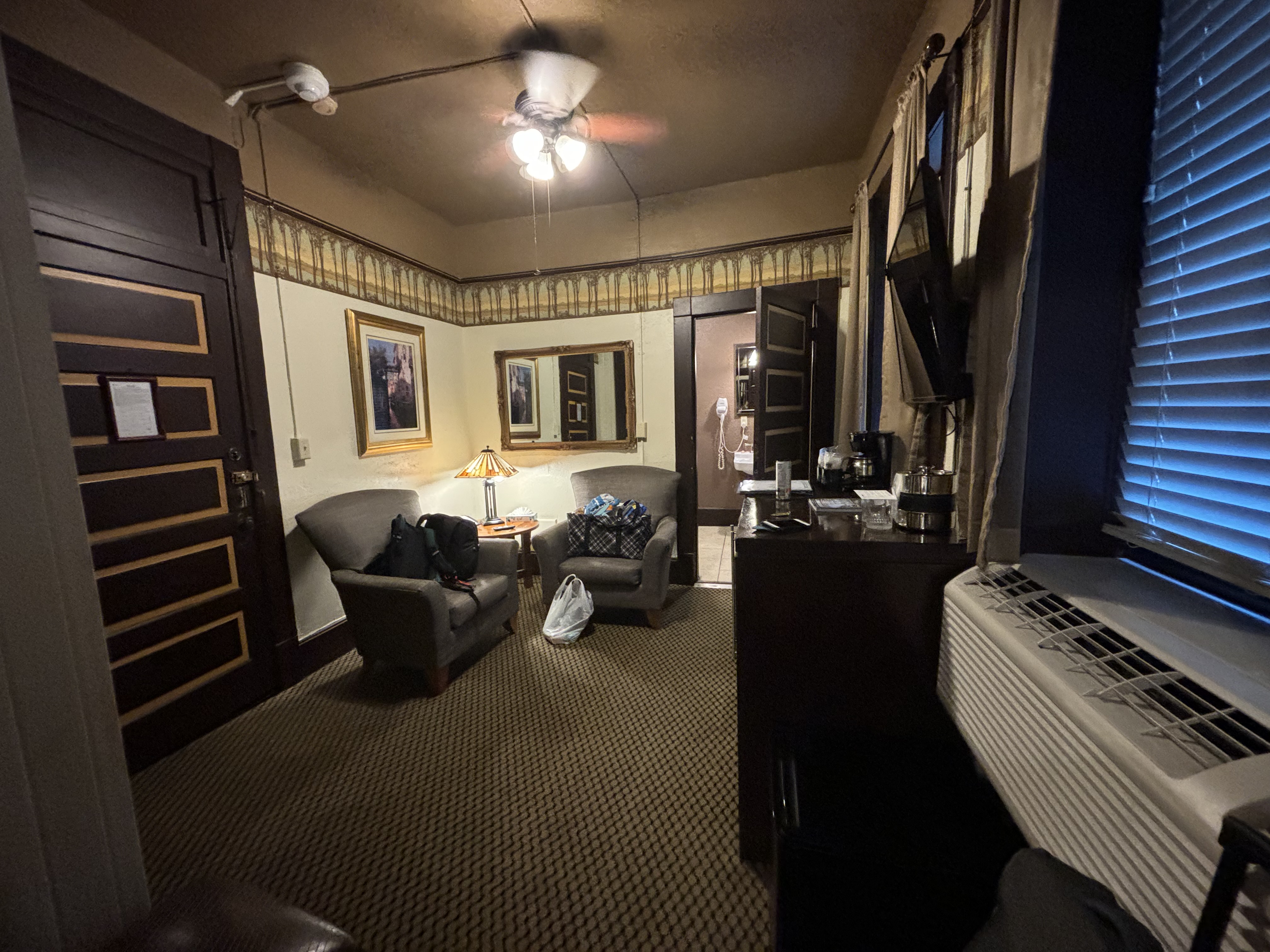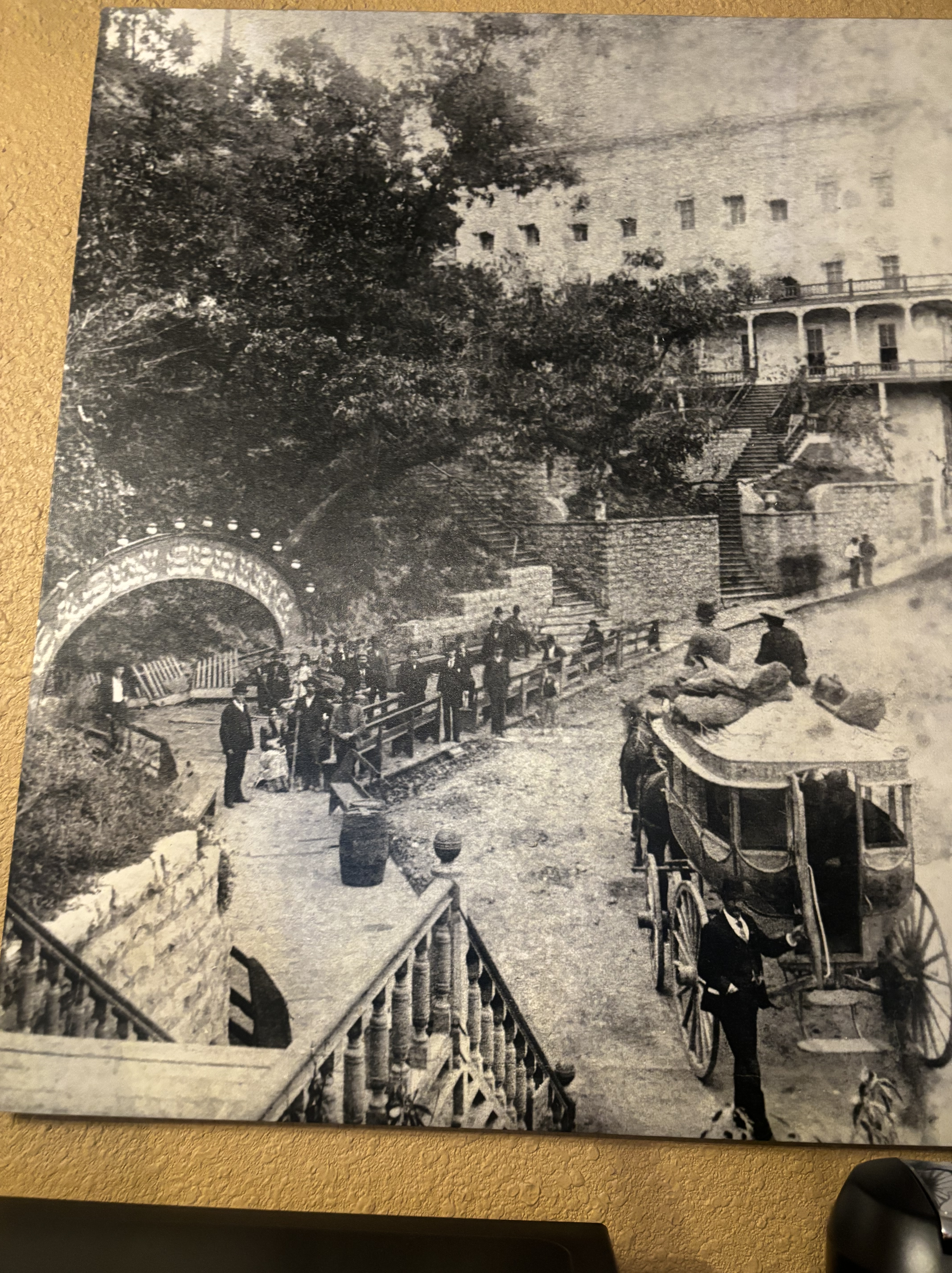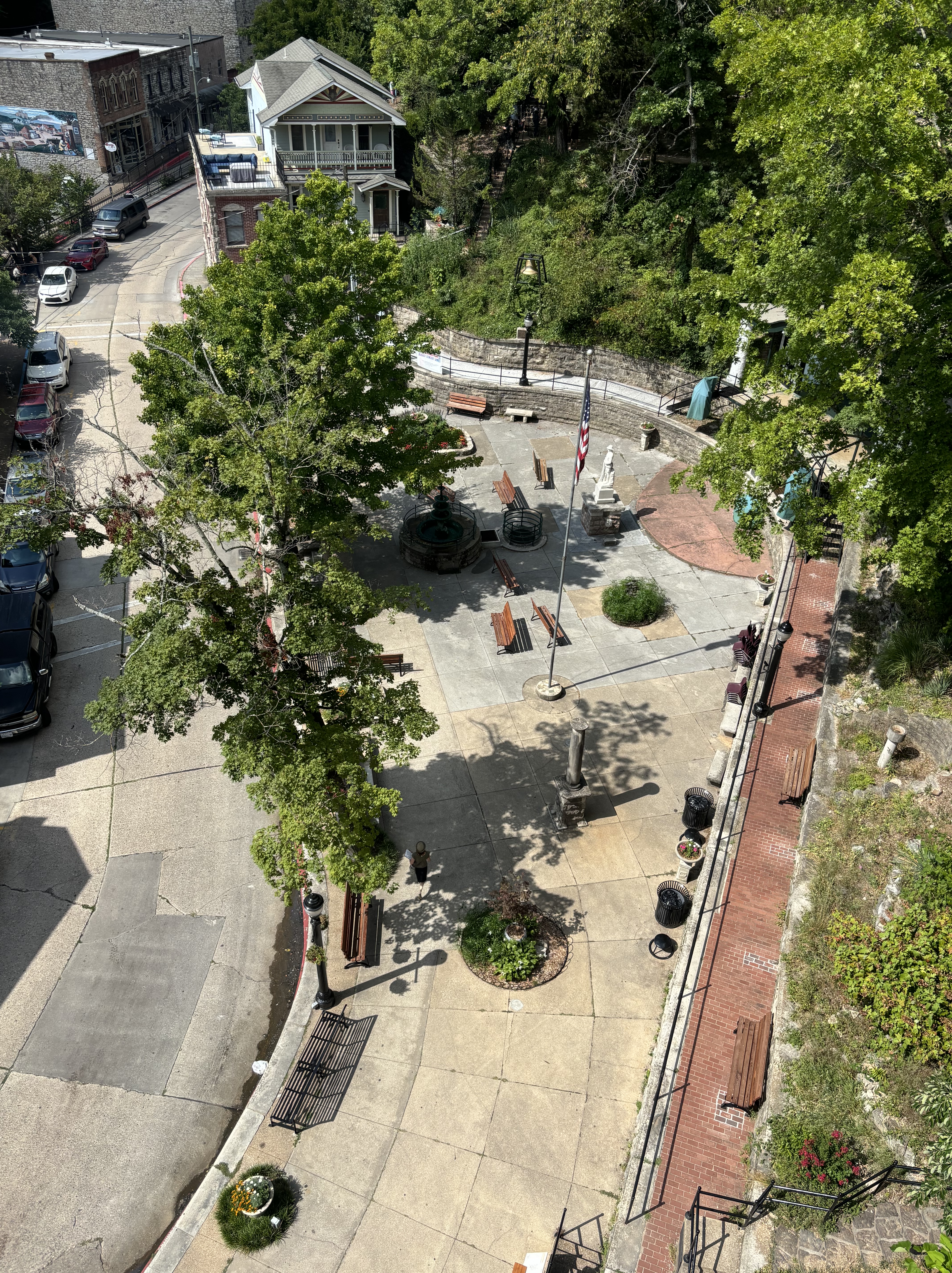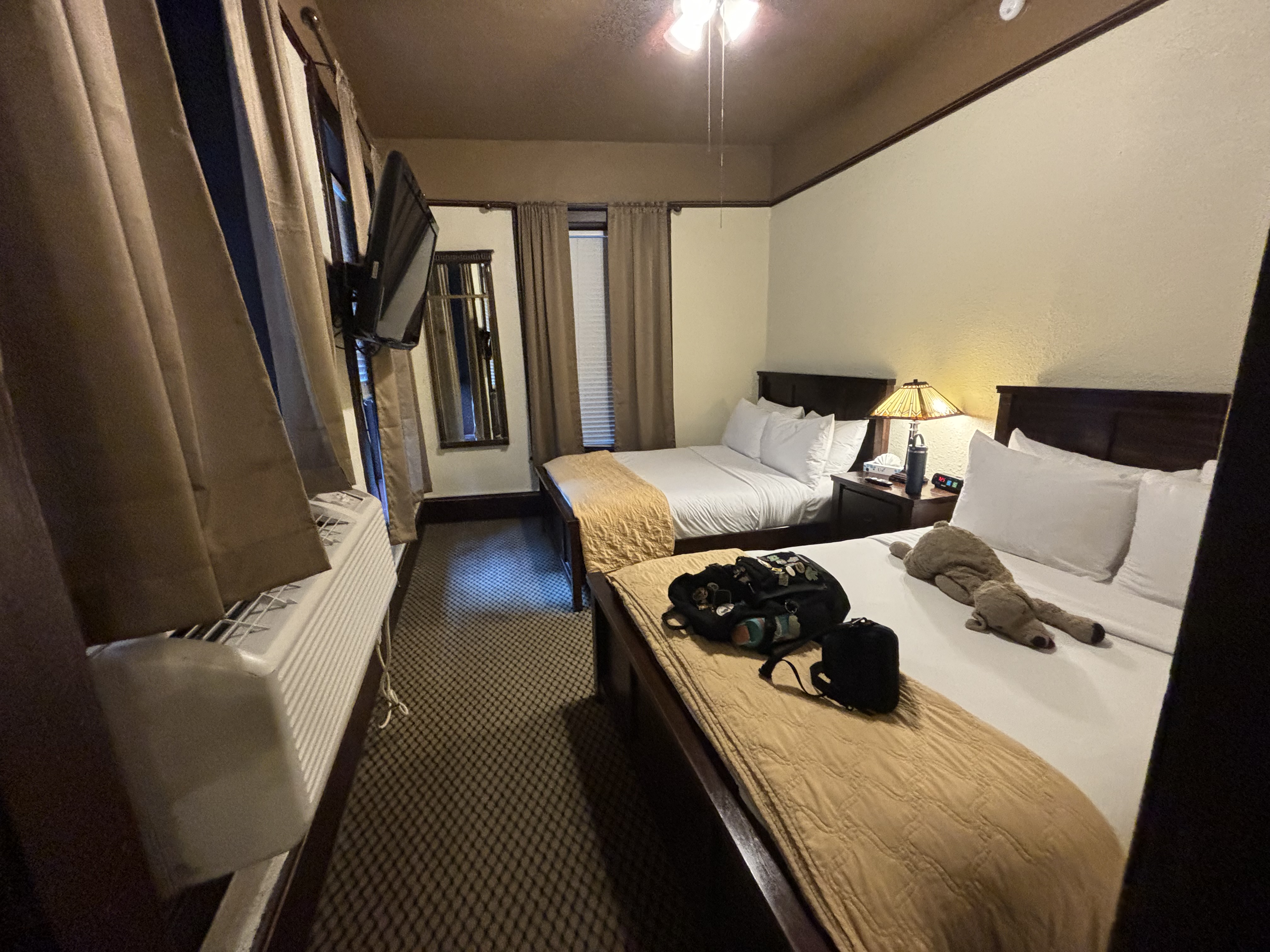When I first started planning this trip, I didn’t know where we were going to stay in Arkansas. I came across Eureka Springs by accident and ended up adding an extra day here because it was so cute. I am so glad I did! We stayed in the historic Basin Hotel which was built in 1905 near the Basin Spring. There are several springs in the area and they have been known for their healing properties for over 100 years. The hotel definitely seemed like it could be haunted and there were lots of stories about spirits in the area. Our room had a jacuzzi tub, which we all took advantage of. The hotel had an amazing game room, bar and balcony restaurant. We spent a lot of time taking advantage of the amenities that the hotel offered, such as a scavenger hunt, free Prosecco and a free wine tasting in their hidden speakeasy. The speakeasy was actually hidden underground and you had to take a ladder through a hole in the floor to access it!