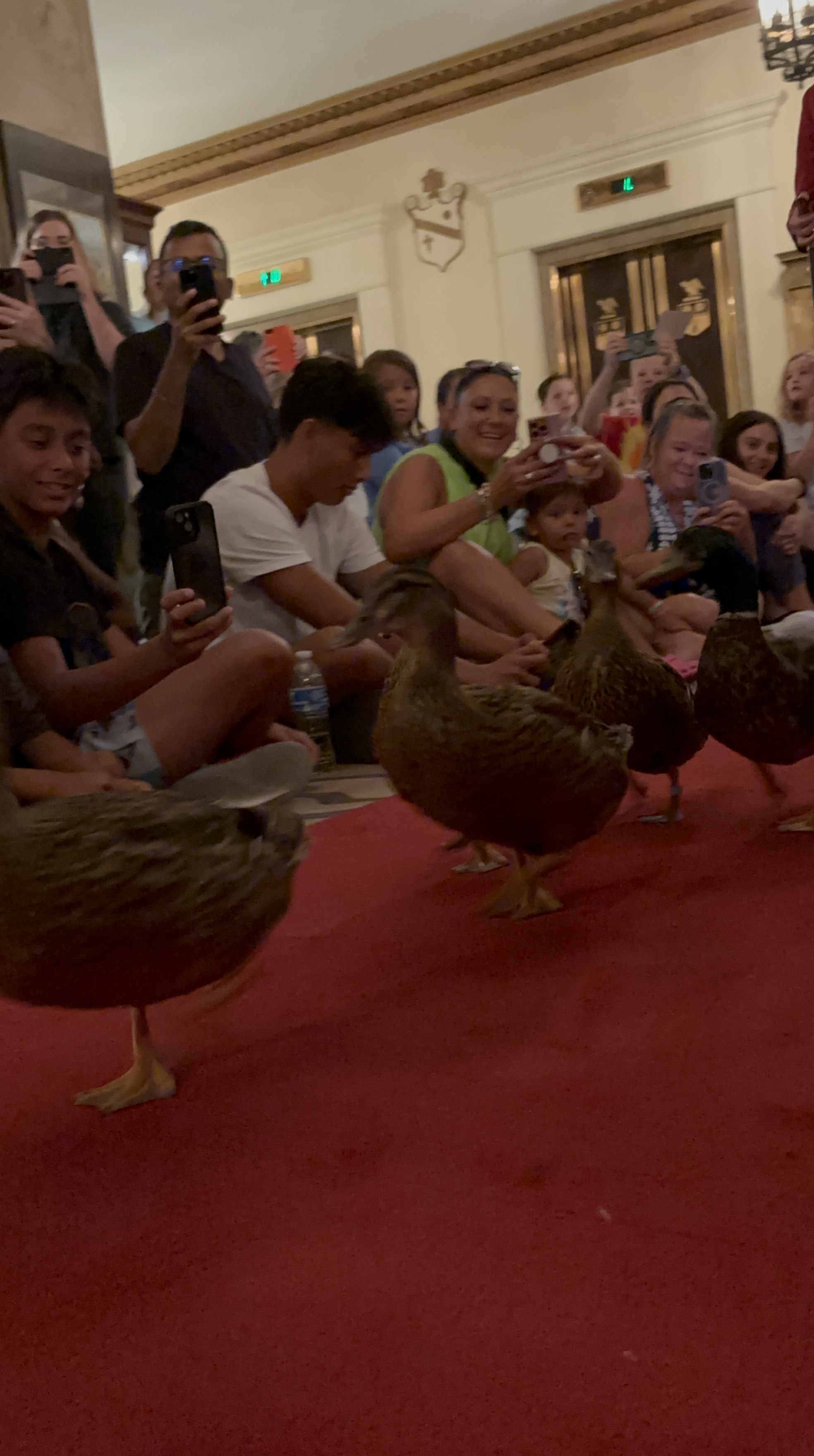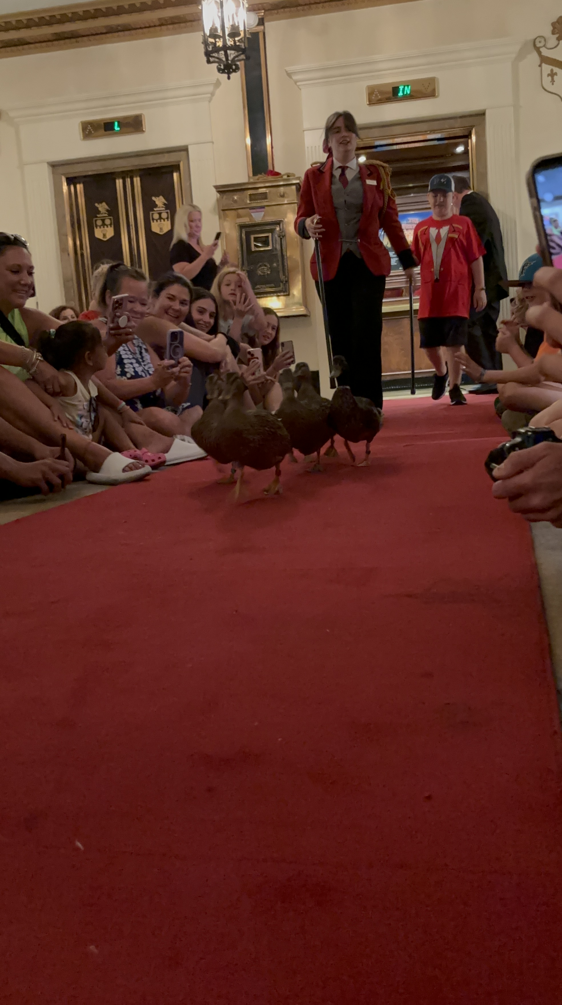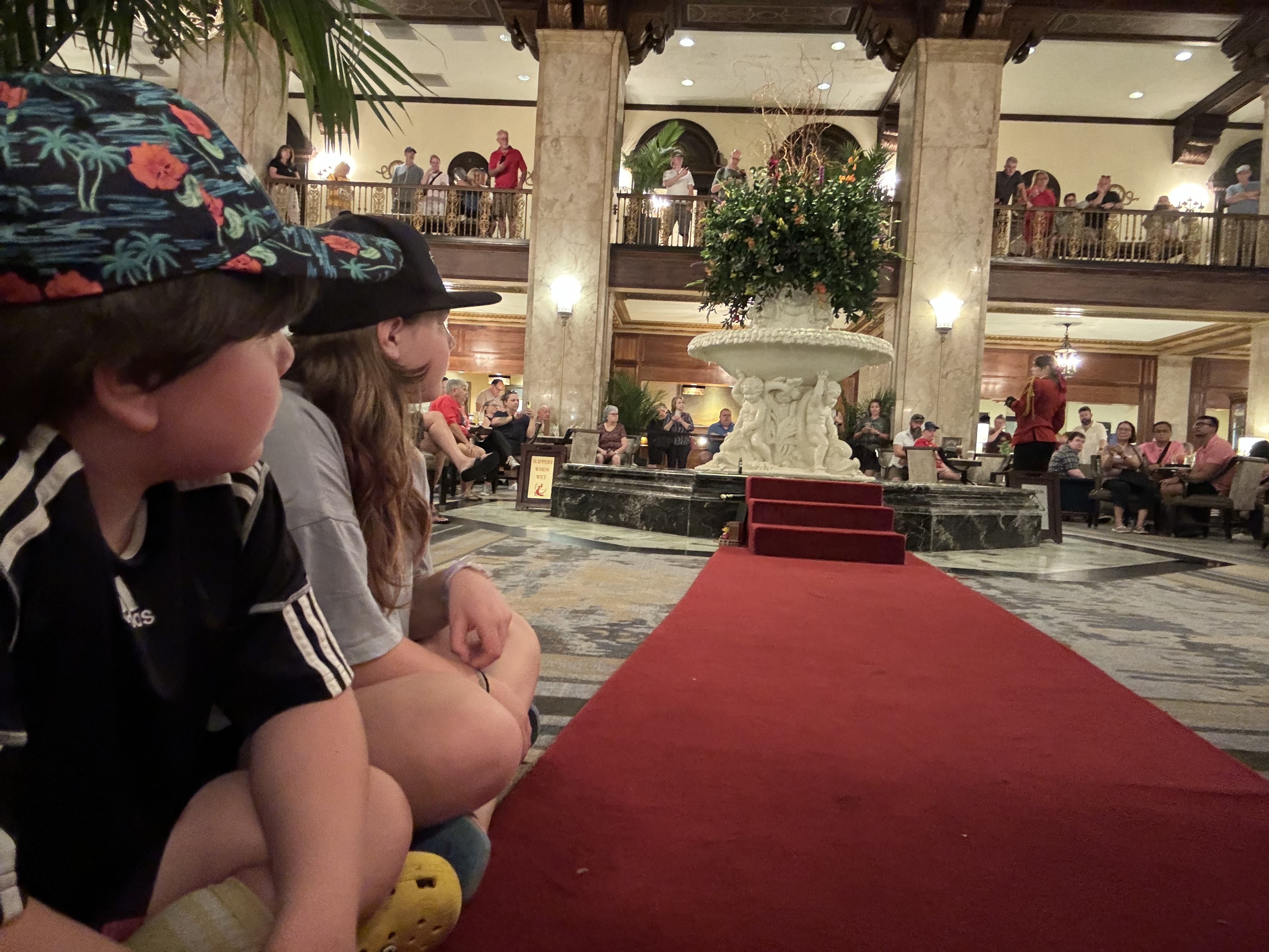 Before knocking around town we had to watch the famous Peabody ducks march into the lobby on their red carpet. Something that began as a joke after a few too many drinks years ago has become a beloved tradition at the hotel. Every morning five ducks march down their red carpet to the fountain at 11:00 and at 5:00 in the evening they march back down the red carpet to go back to the roof. It was the cutest thing ever! The kids even got a white chocolate duck as a snack.