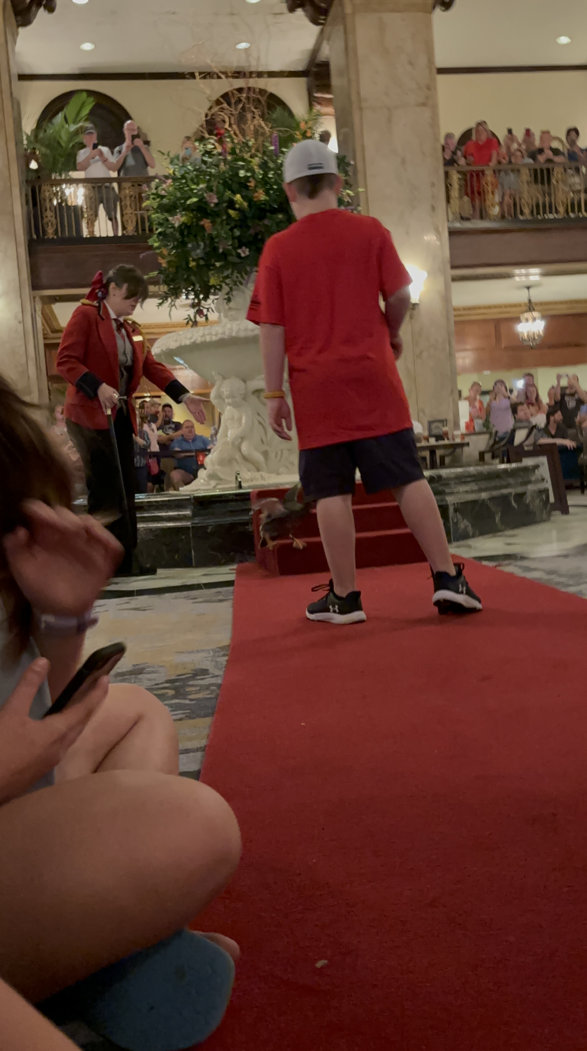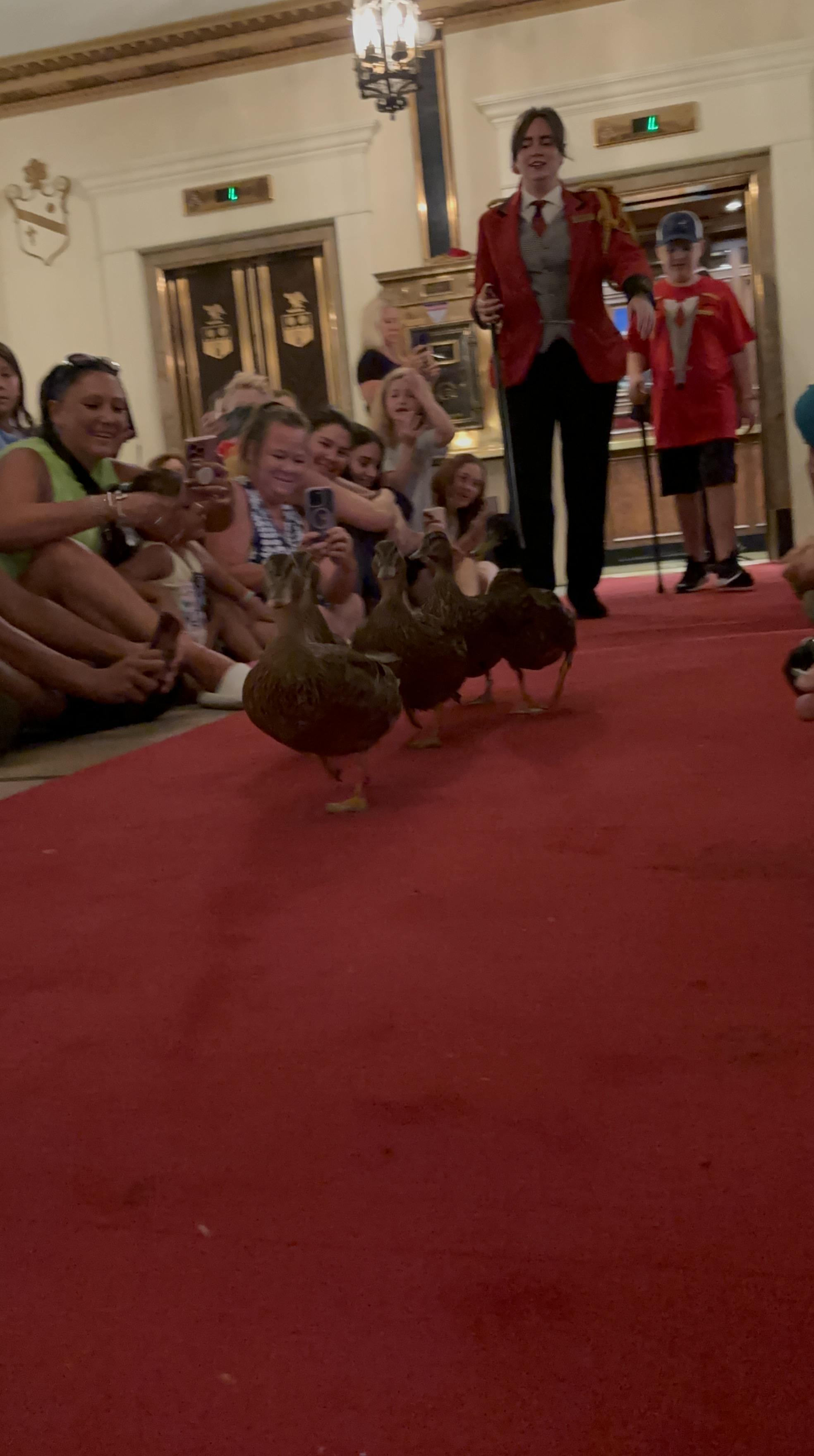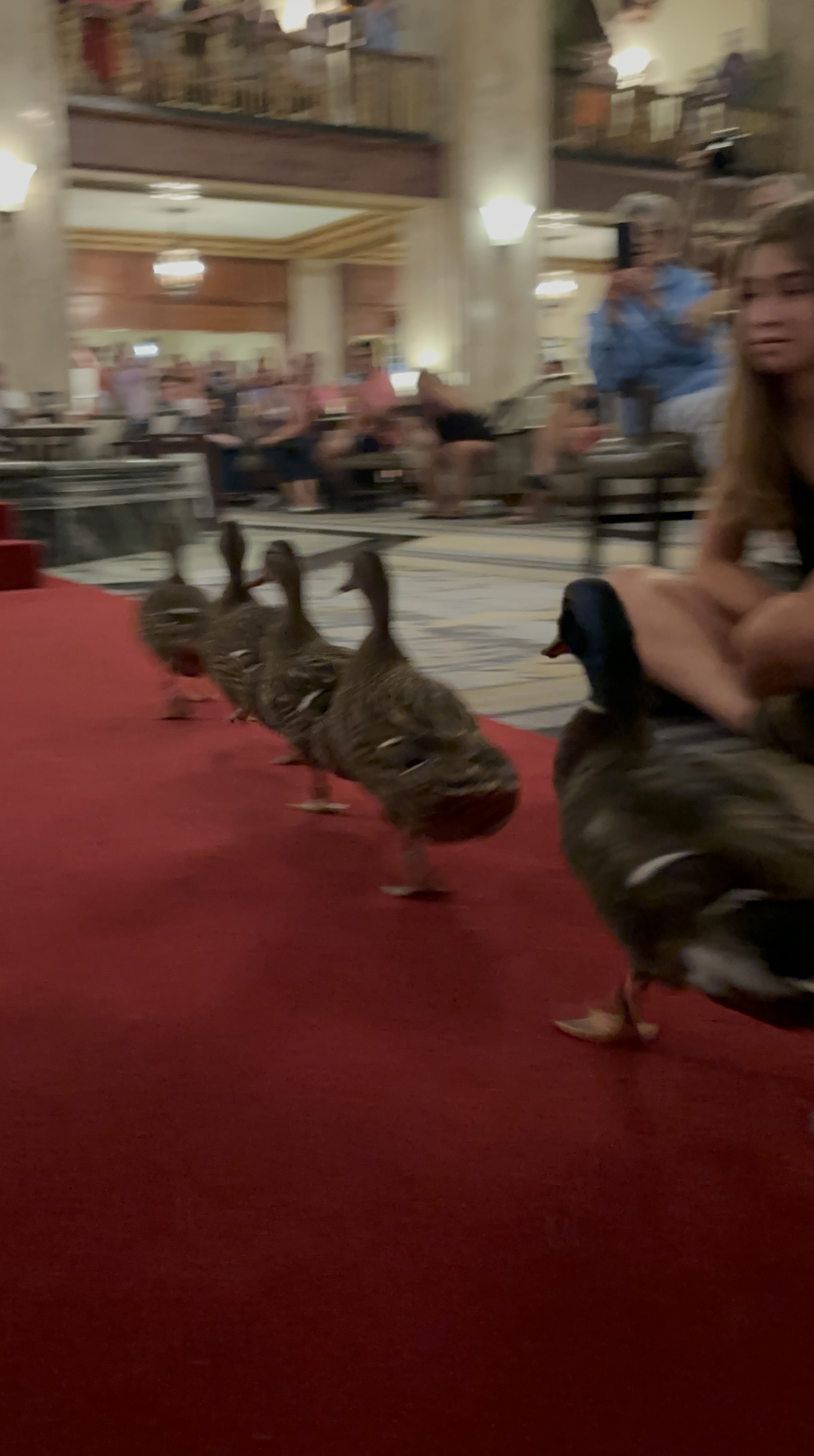 Before knocking around town we had to watch the famous Peabody ducks march into the lobby on their red carpet. Something that began as a joke after a few too many drinks years ago has become a beloved tradition at the hotel. Every morning five ducks march down their red carpet to the fountain at 11:00 and at 5:00 in the evening they march back down the red carpet to go back to the roof. It was the cutest thing ever! The kids even got a white chocolate duck as a snack.