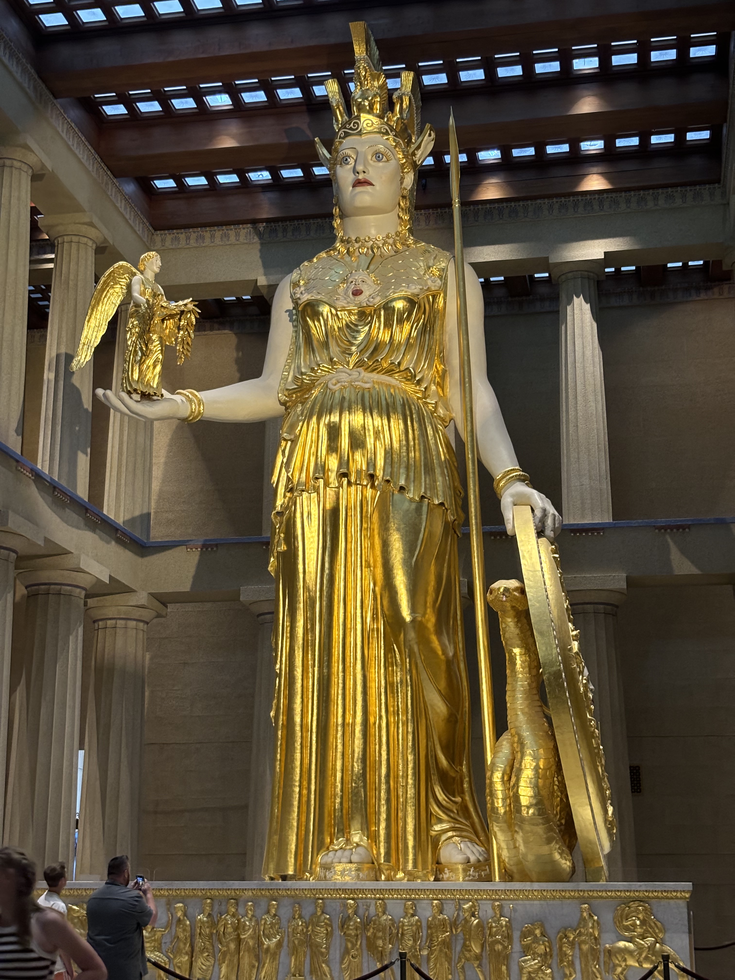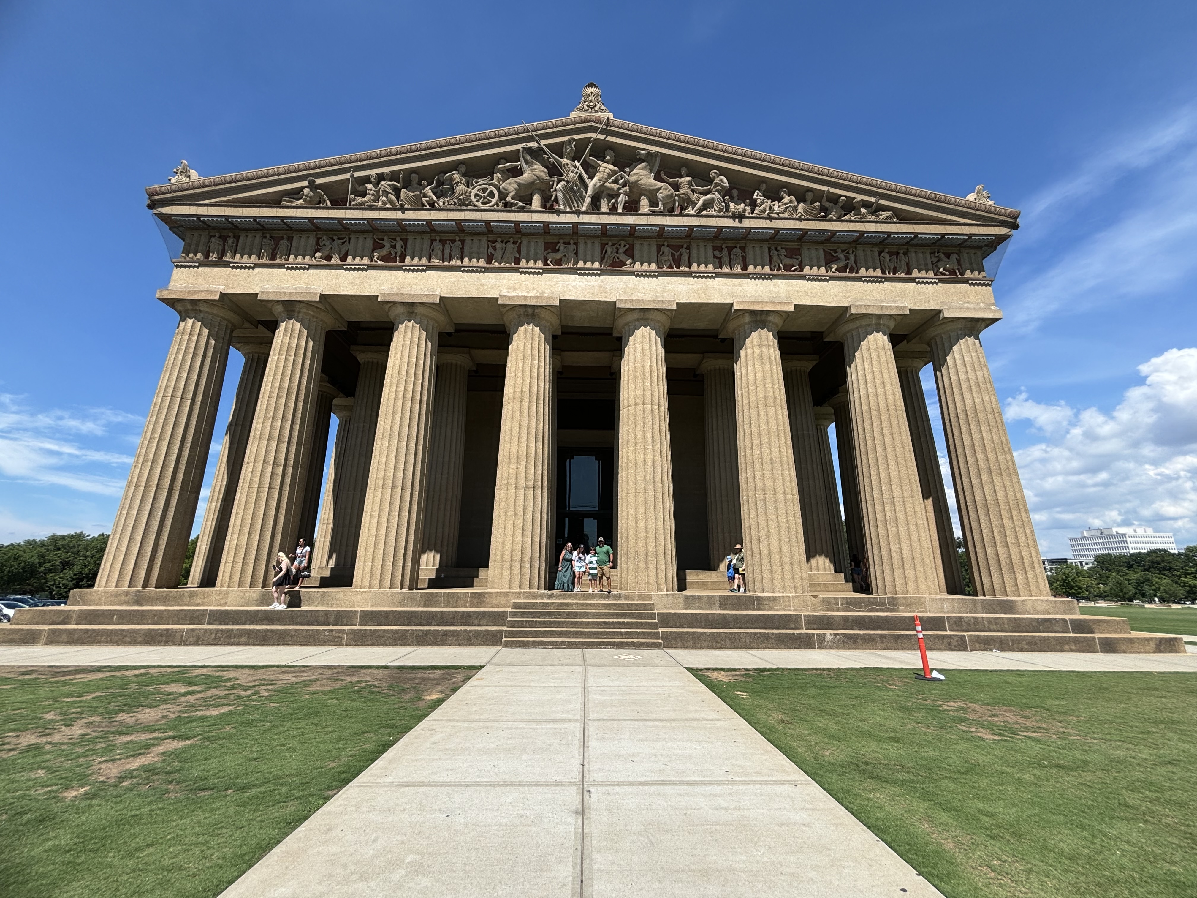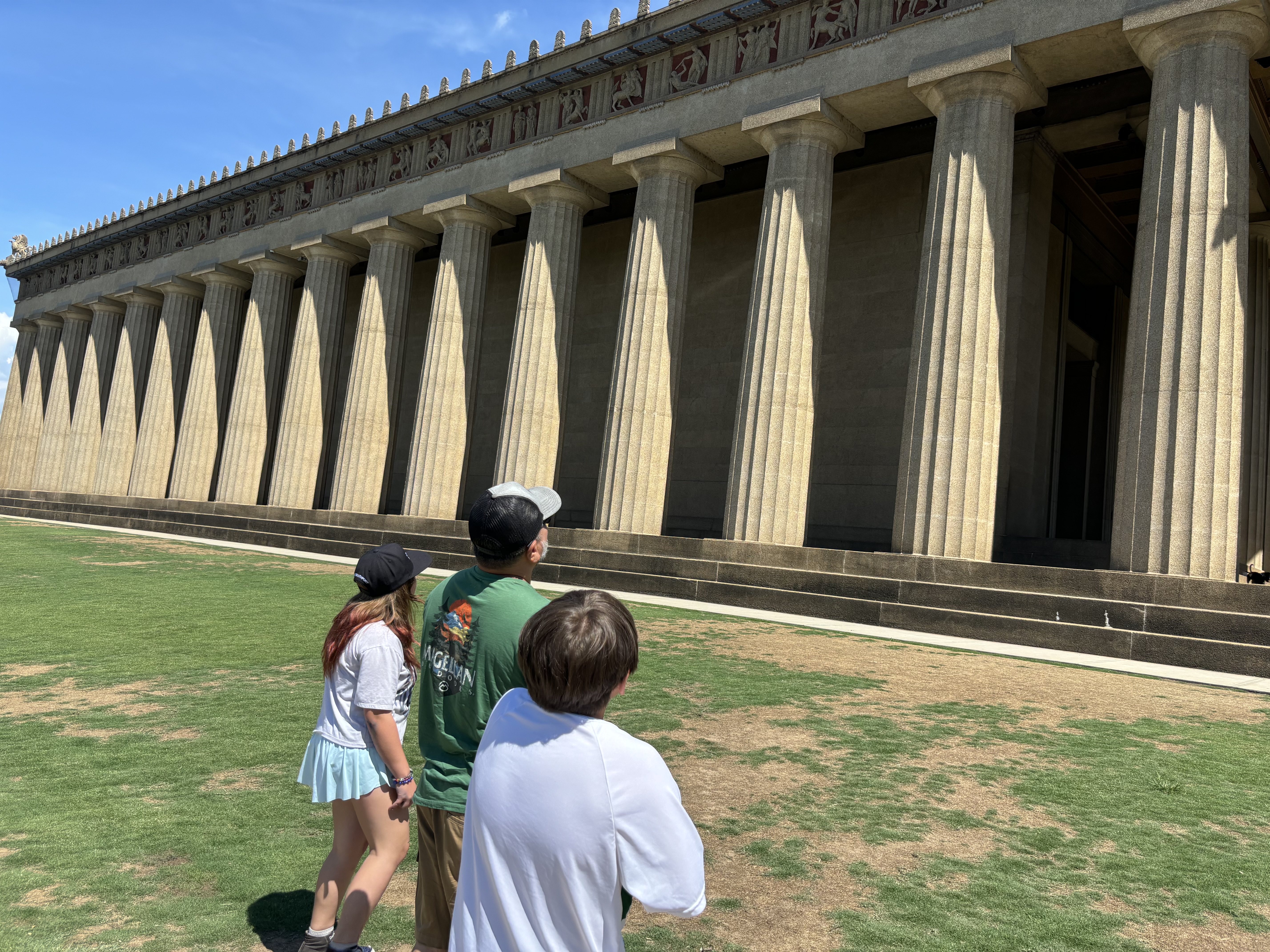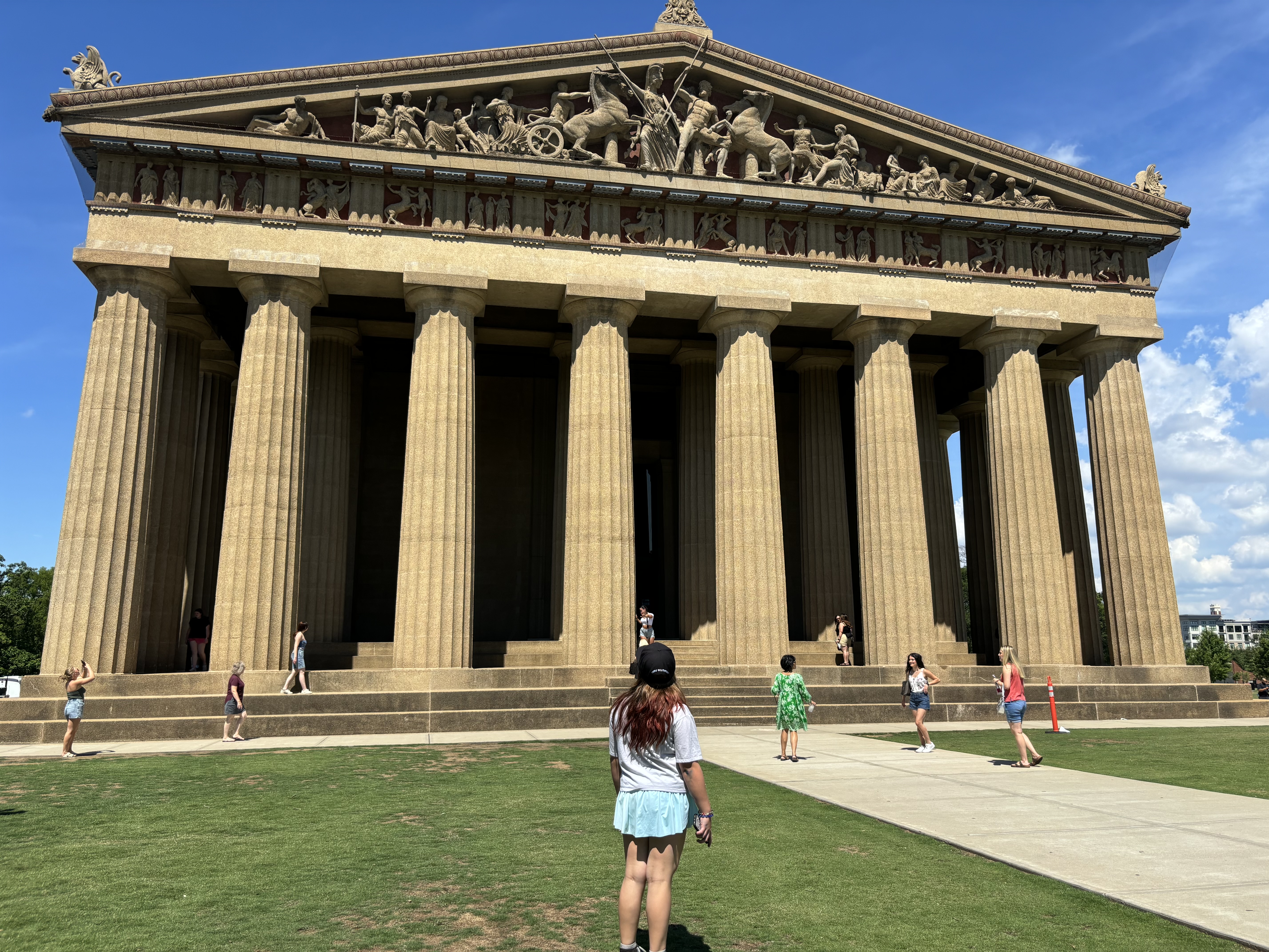 Our trip to Tennessee was fast paced and full of fun. After about a six hour drive we finally made it to Nashville. Luckily, we didn’t hit too much traffic so the drive was relatively easy. Our first stop was The Parthenon which is a replica of the one in Greece. Louie was blown away by the architecture and the history of the Parthenon. Inside this massive building was an art museum and a 40 foot statue of Athena. The smaller figure on her hand was of Nike and was over six feet tall. She was the definitely the highlight of the museum. However, coming in a close second were the props that were used in Percy Jackson. Both kids loved reading it and then watching it. Part of the story is set at the Parthenon and being able to see part of the actual script was awesome!