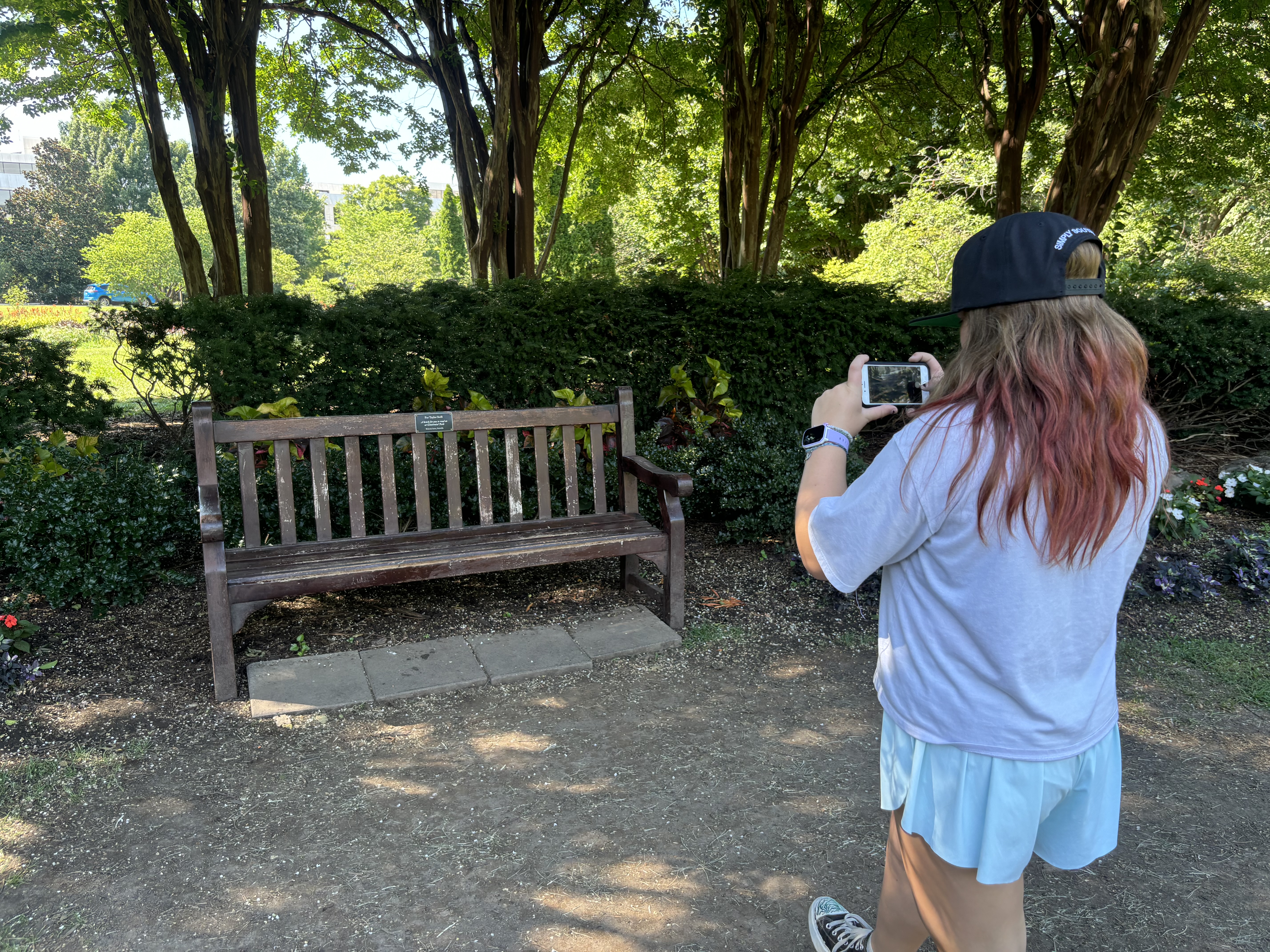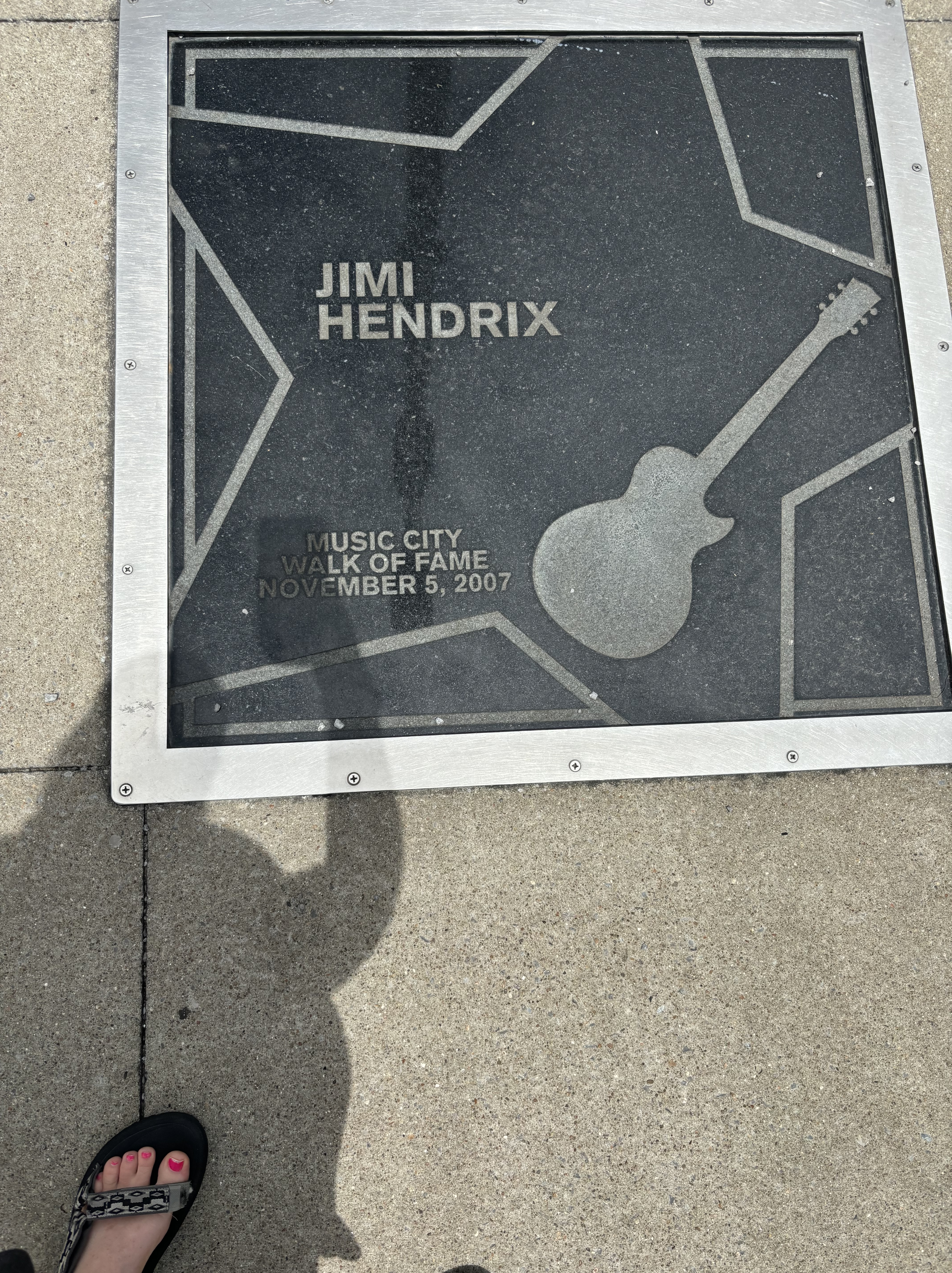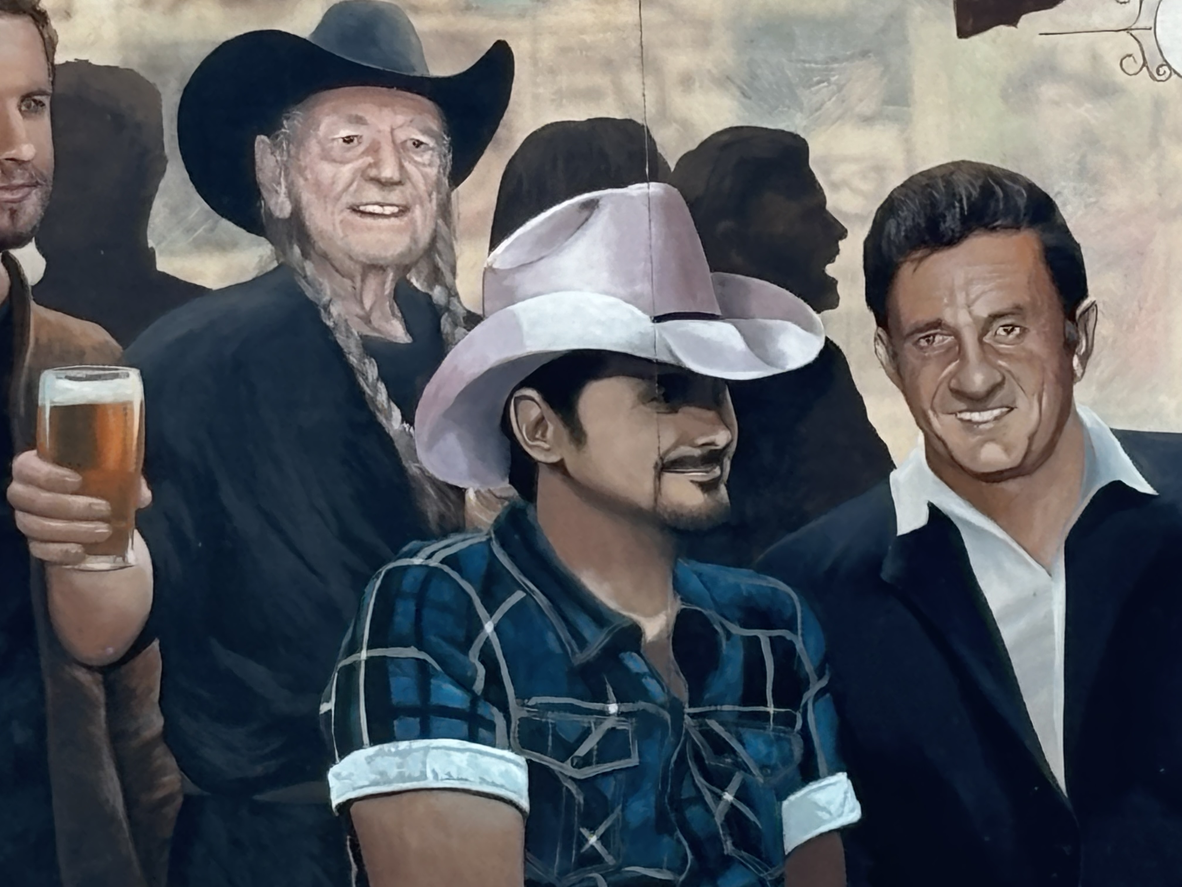 When you have a Swiftie in your house, you try to find as many Taylor Swift related things as you can. On Saturday we wandered around Centennial Park and found the bench and the willow tree that were placed there for her. On Sunday we visited the Country Music Hall of Fame where we explored the Taylor Swift Education Center and saw several of her outfits and instruments. Of course no trip to Nashville is complete without locating Taylor’s hair in the Legend’s mural. In 2020 she was replaced by Brad Paisley, however, you can still see a piece of her hair in the mural.