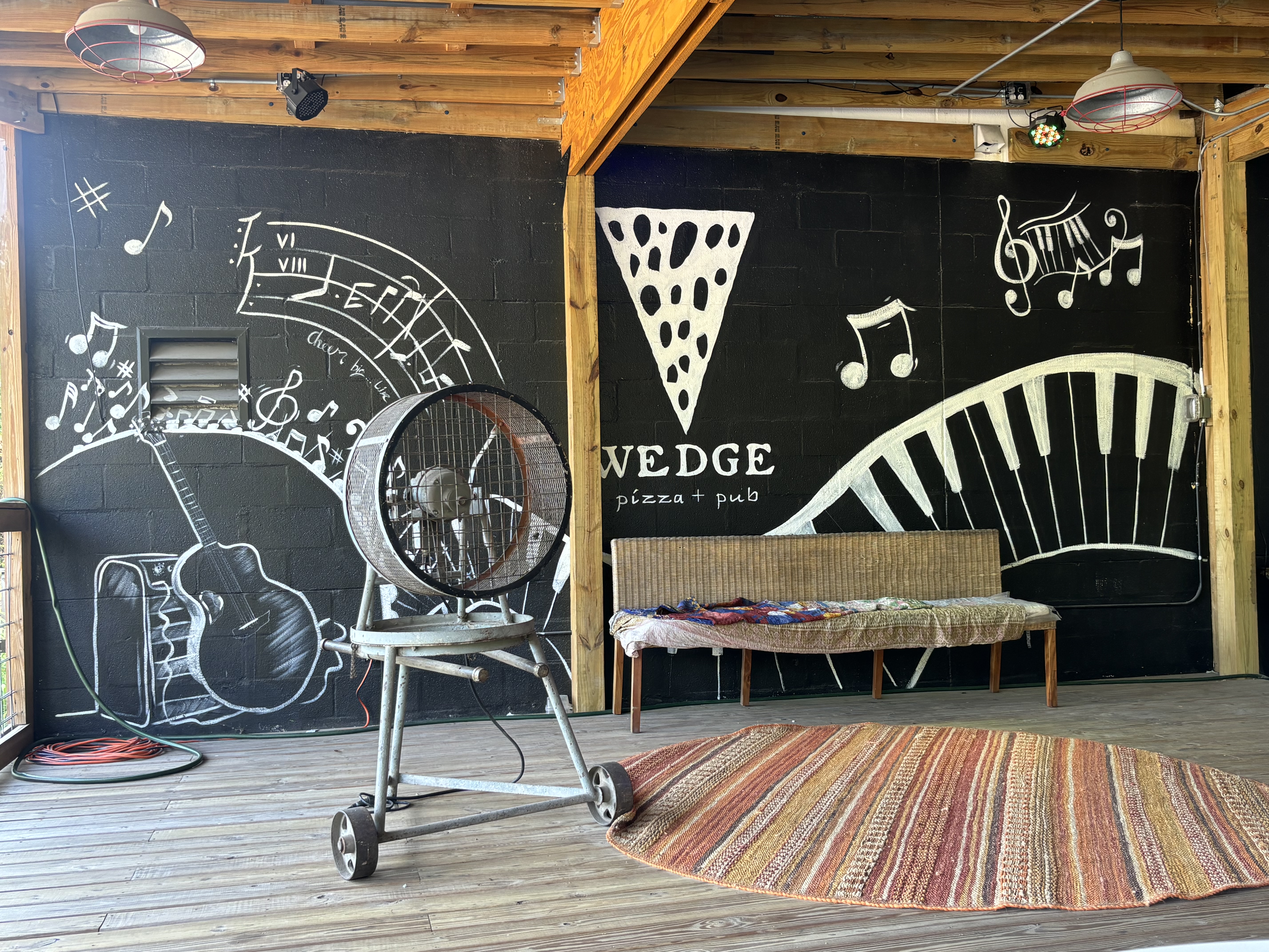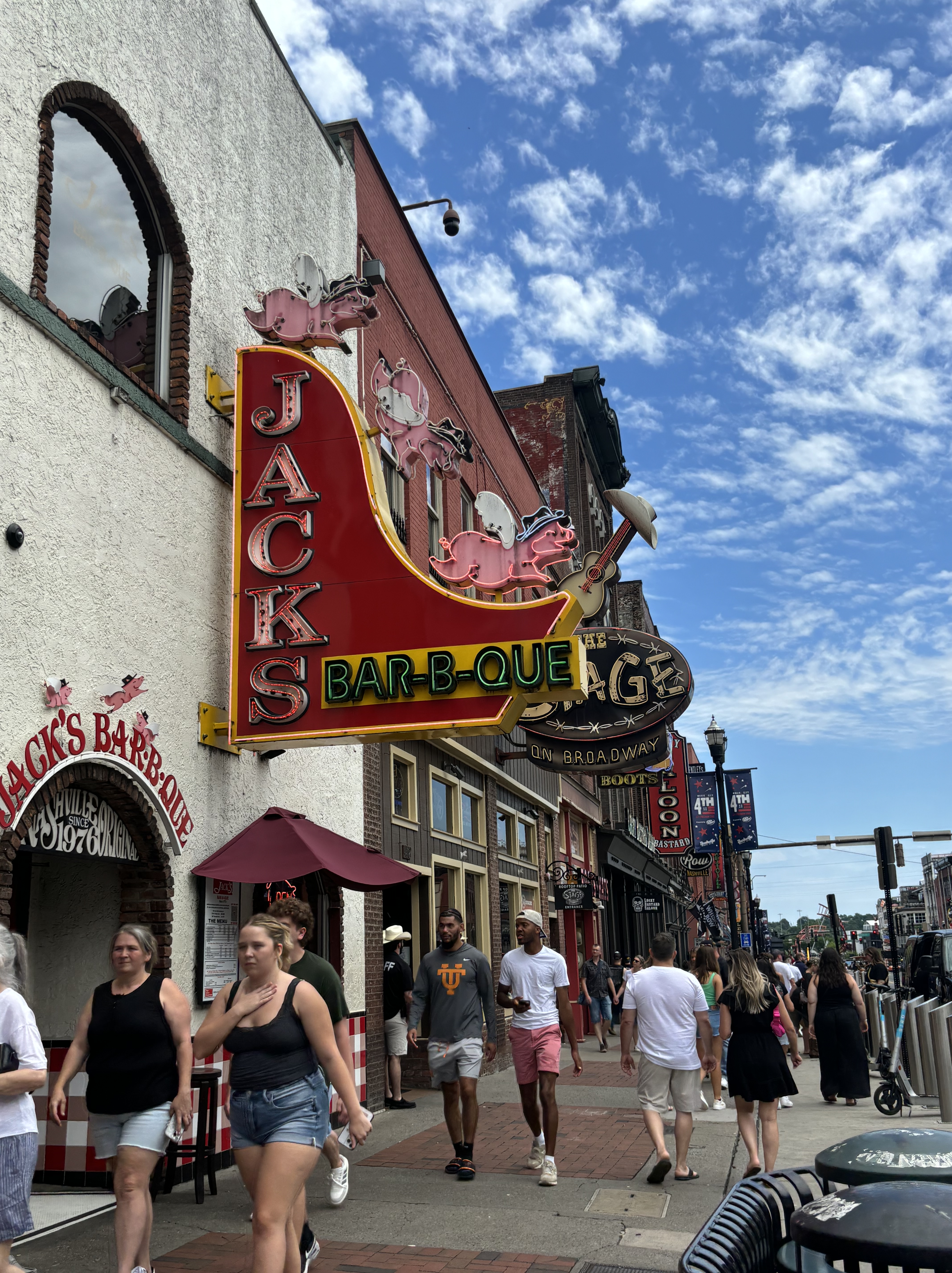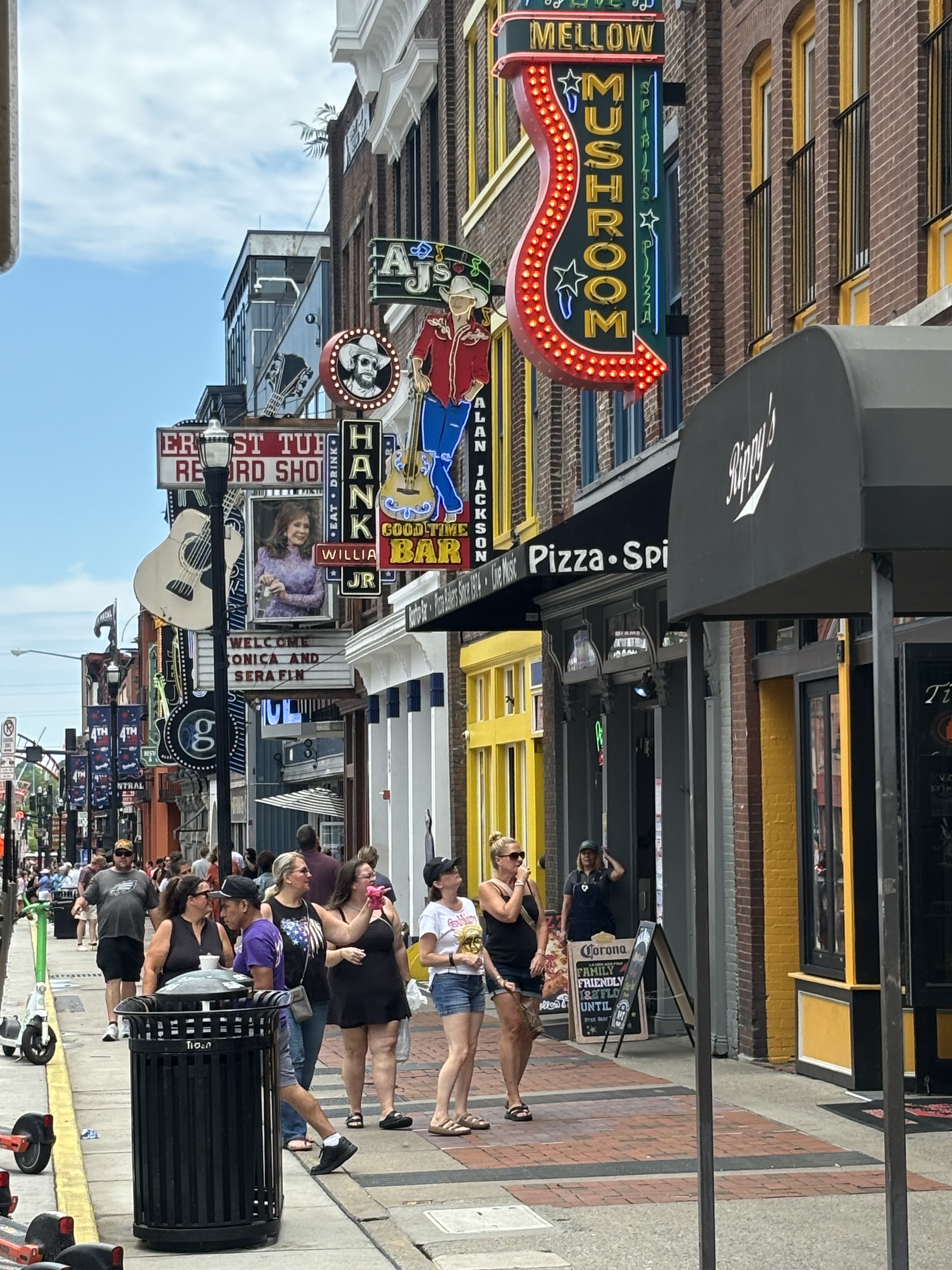 After leaving the museum we wandered around Broadway and took in all the sights and sounds. We had attempted to visit the Broadway strip Saturday night, but it was so packed you couldn’t even get through. Coming back on Sunday afternoon was a much better idea. However, since we didn’t end up eating on the strip Saturday night, we found a fun pizza place called Wedge Pizza which happened to be the place to be before the Nashville SC game against Miami. Lucky for us, Louie was in his soccer gear and was repping Charlotte FC.