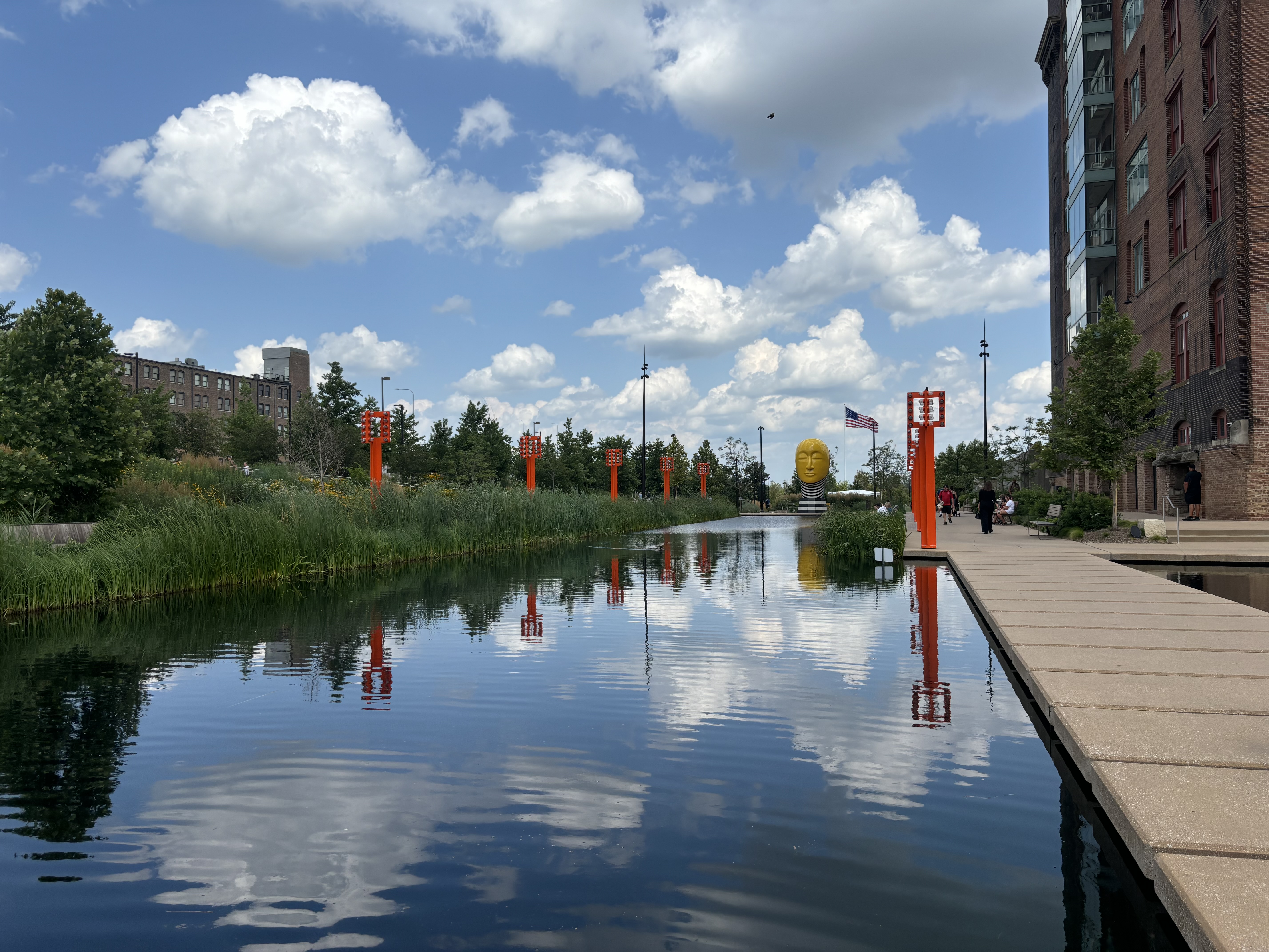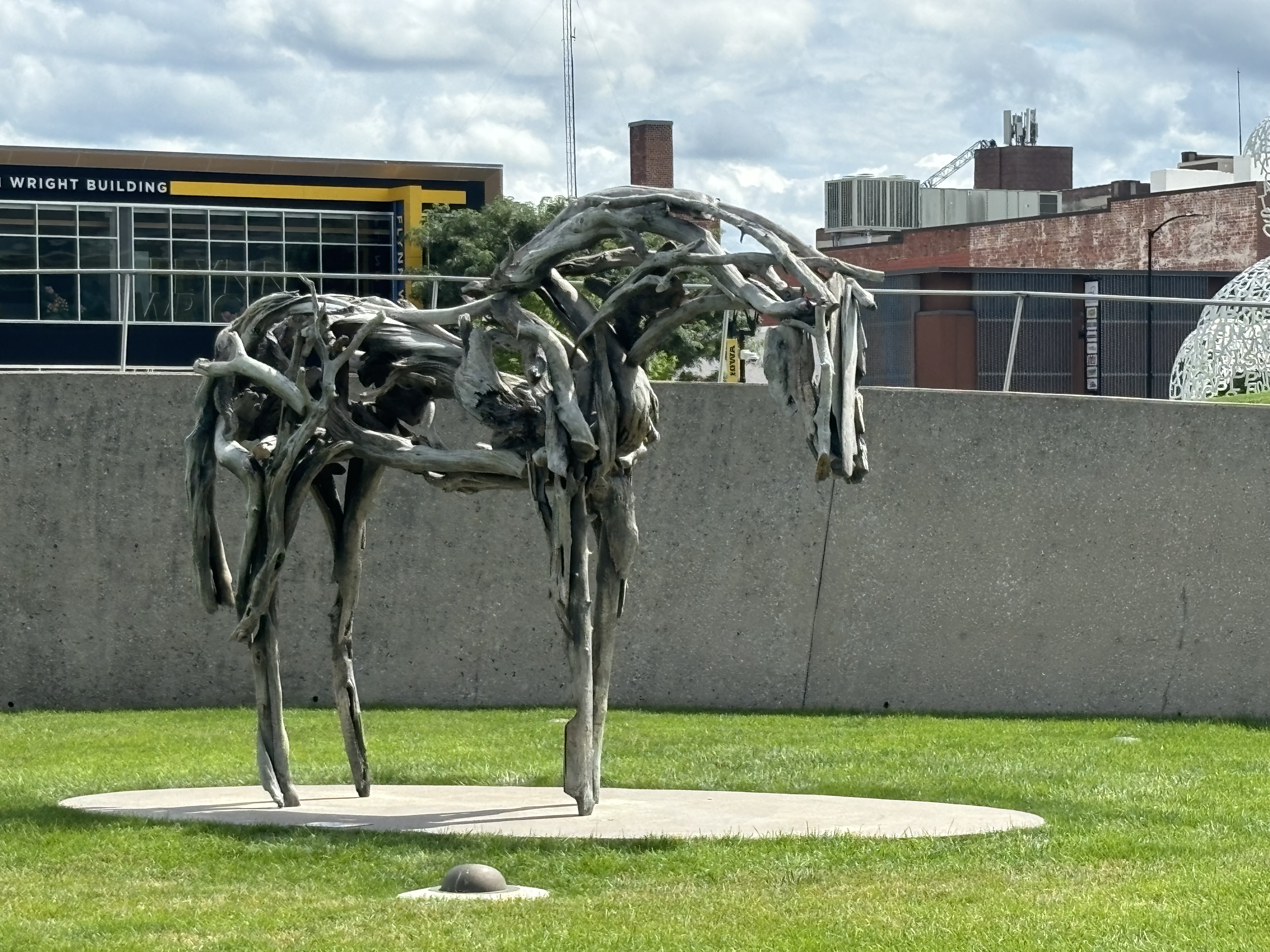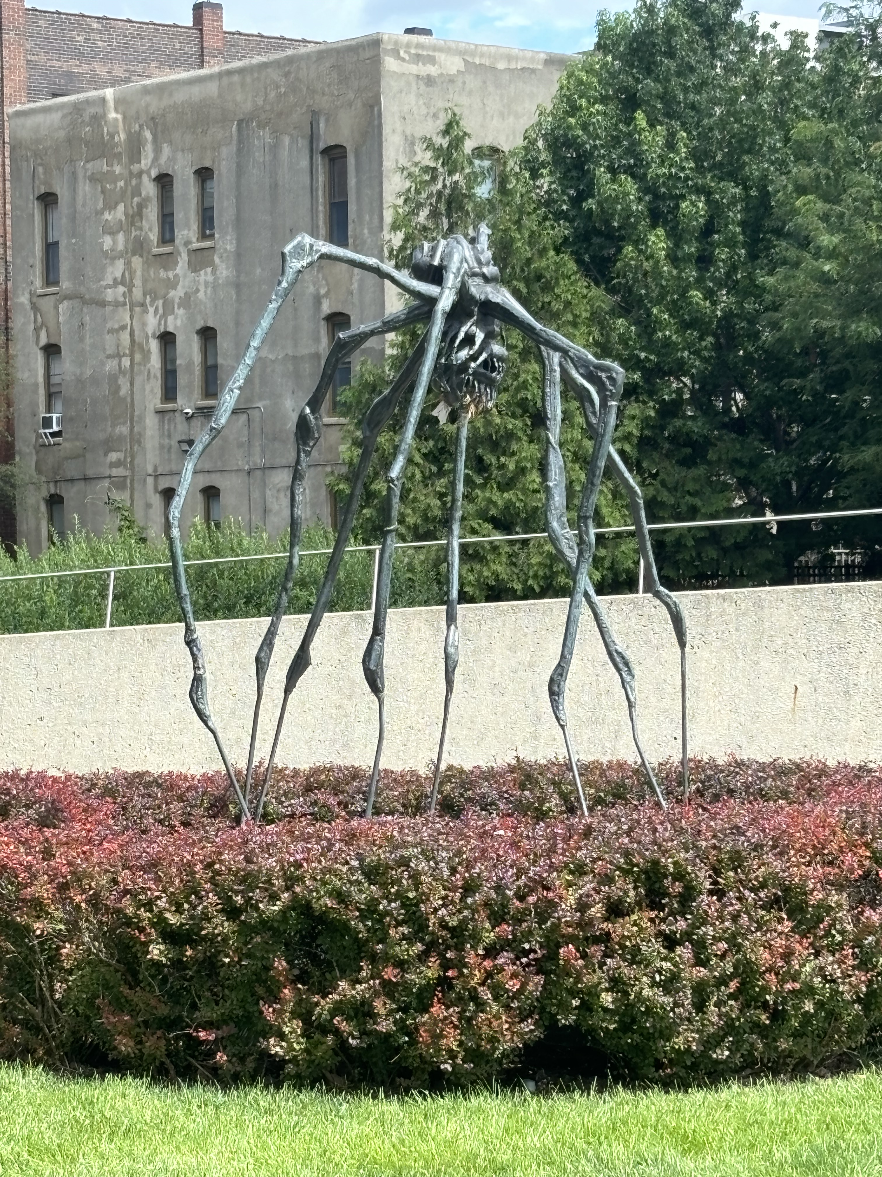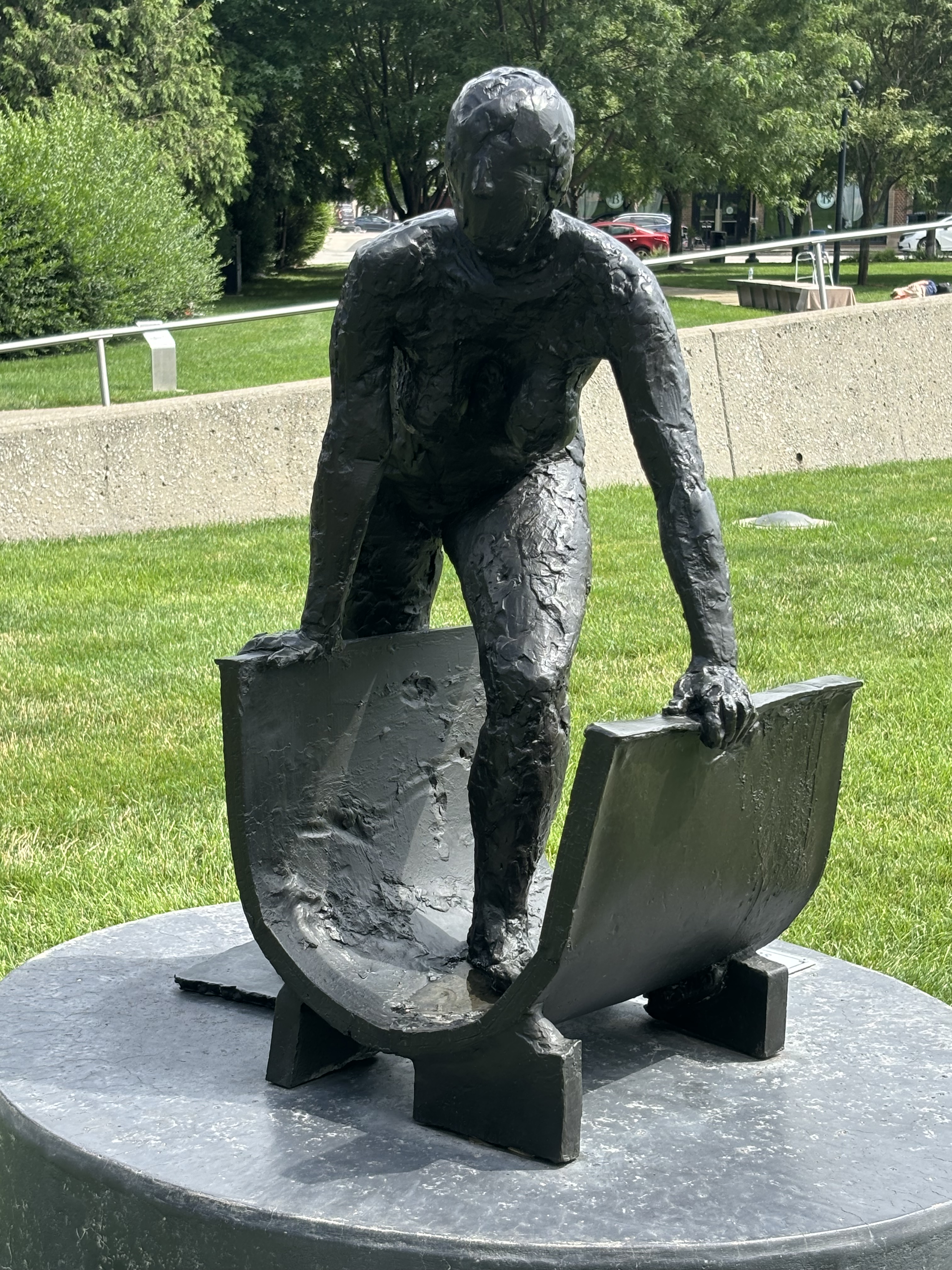 After leaving Kansas we headed to Iowa where we stopped at the Pappajohn Sculpture Park. And to answer your question, no, it has nothing to do with the pizza company. The sculptors are made by various artists and were so neat to explore. My favorite was the large person made out of letters and the kids both really liked the spider. Vinny really liked the skinny bunny.