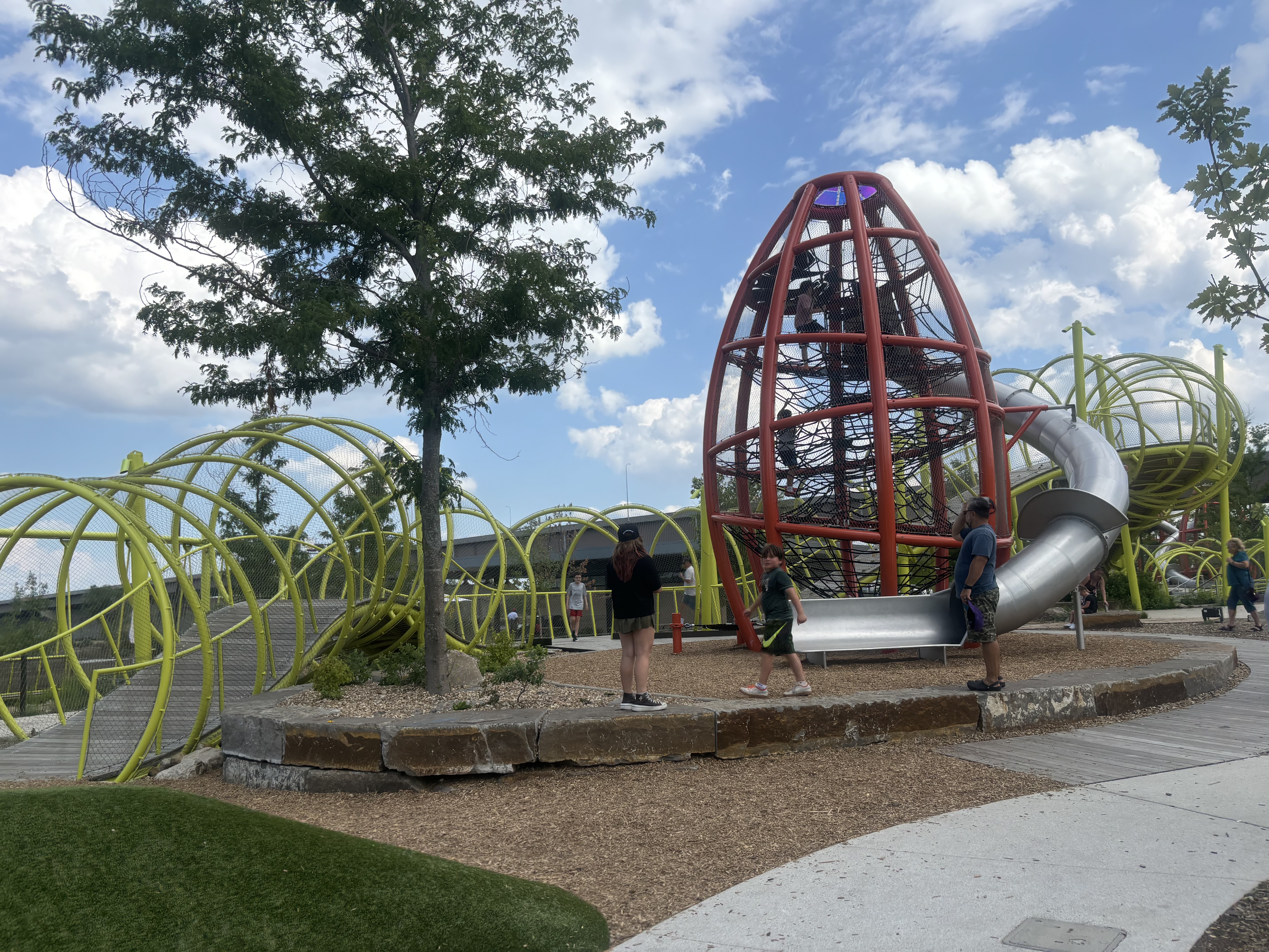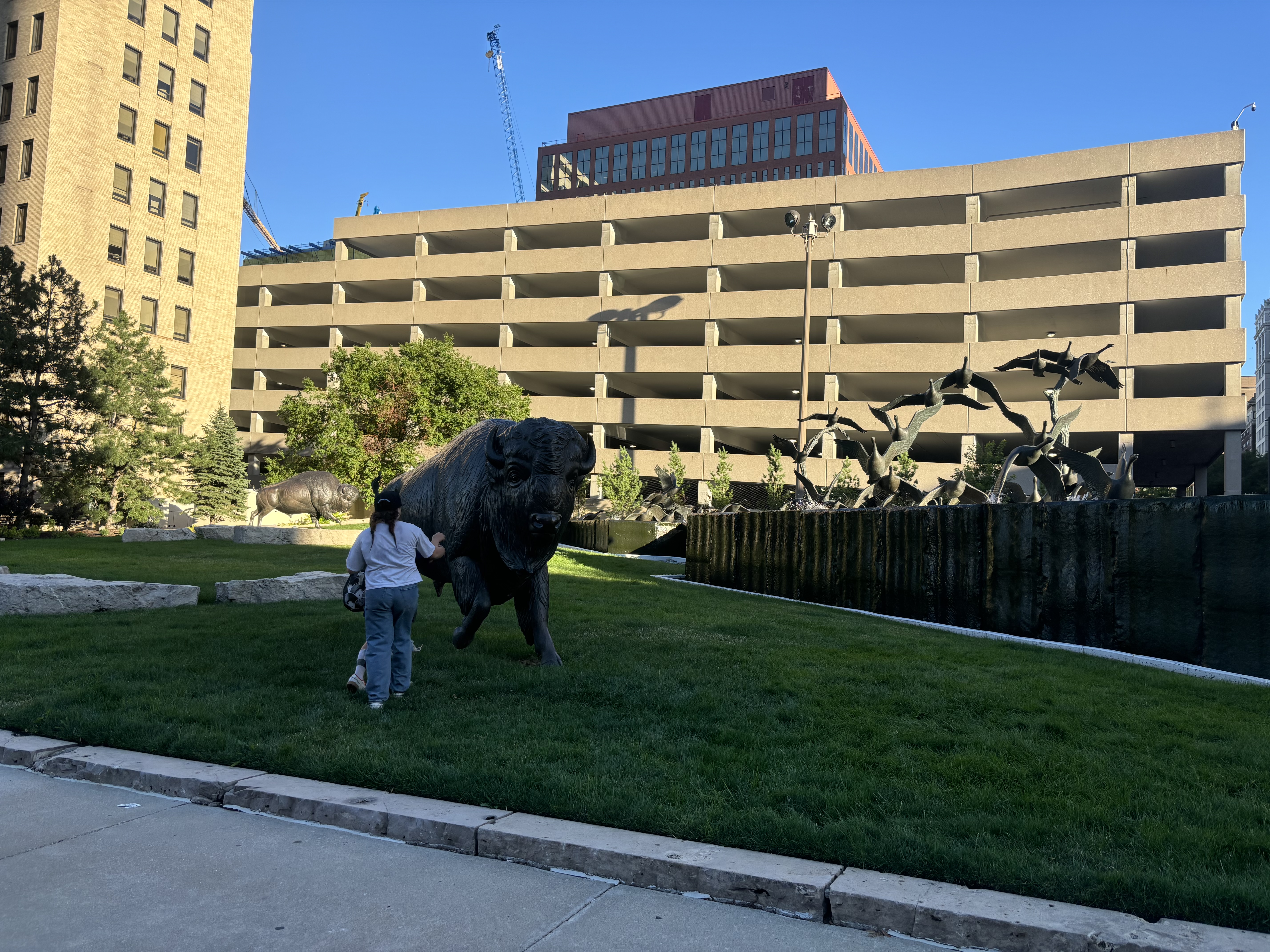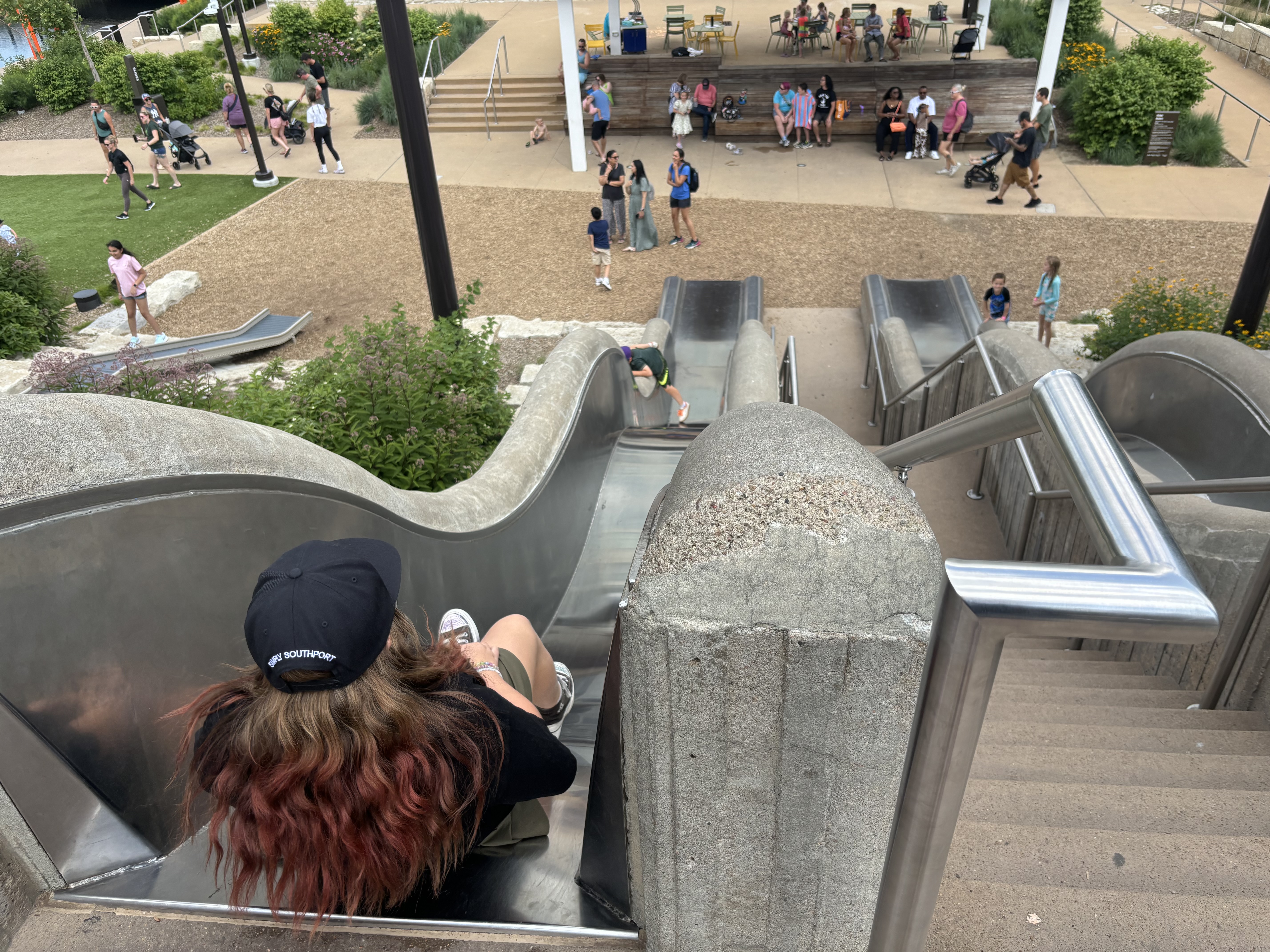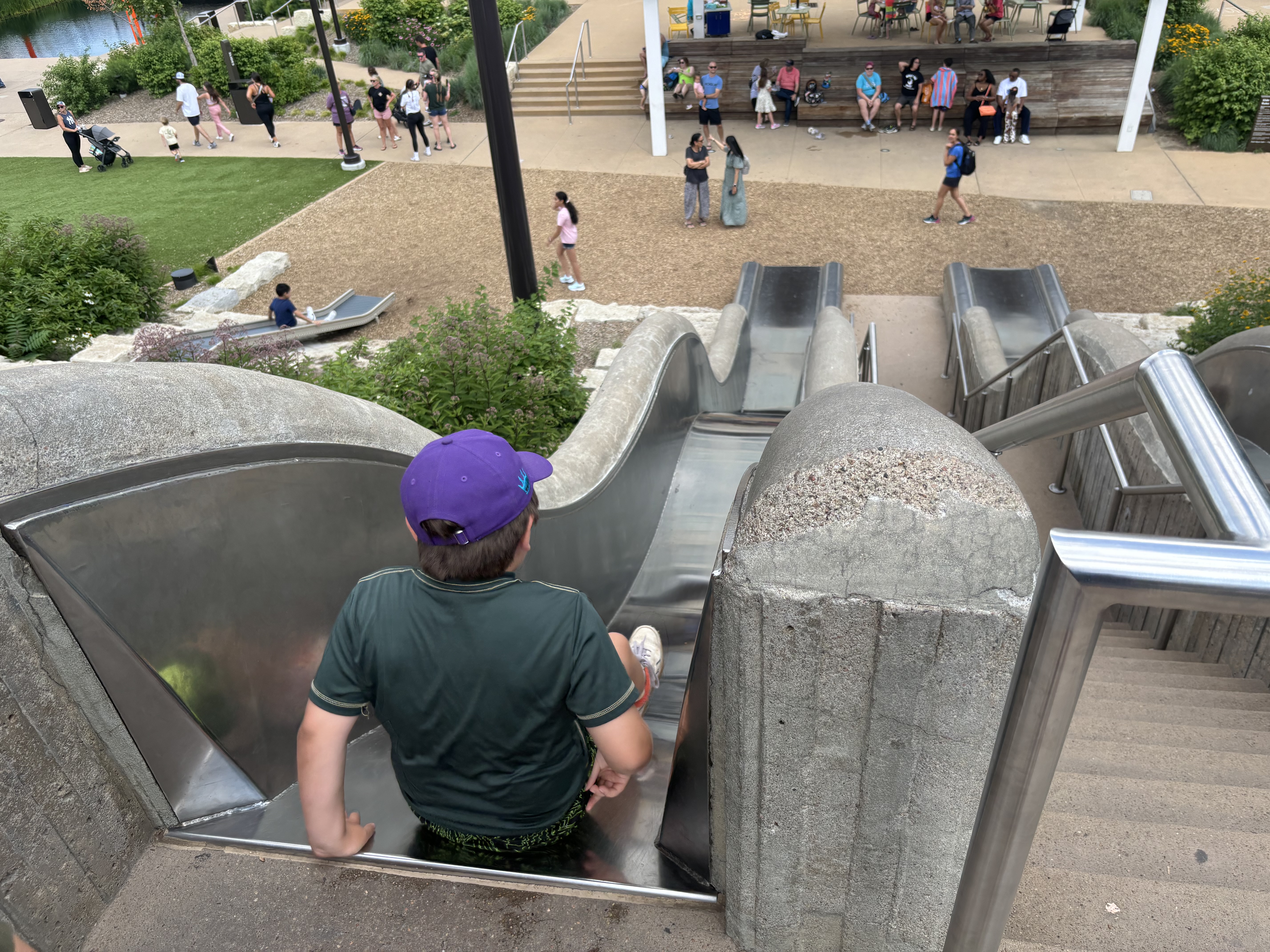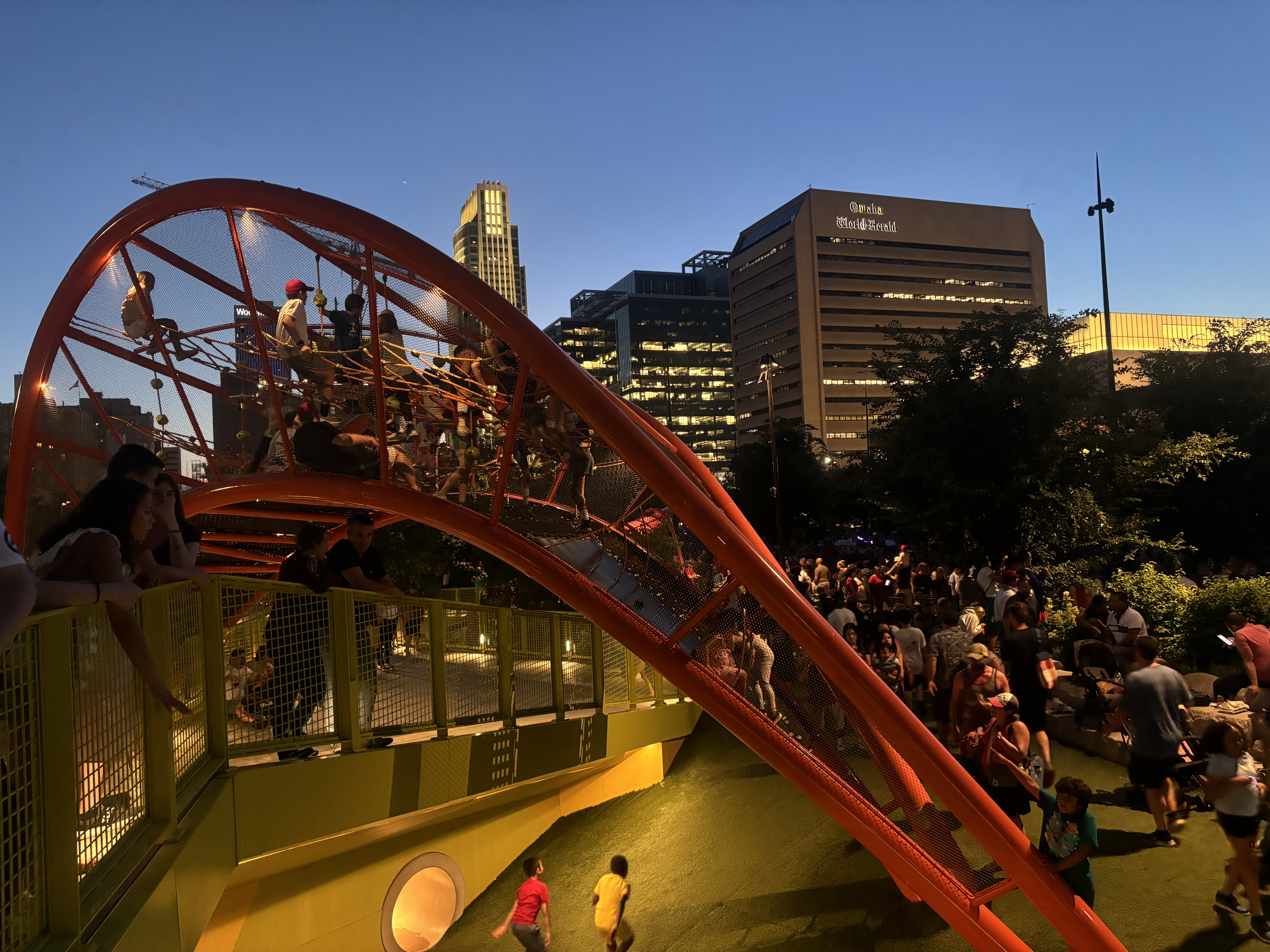 We finally arrived at our last destination of the day, Omaha, Nebraska. We attended their 4th of July celebration where the symphony was playing, kids were running and fireworks were booming. Omaha has AMAZING playgrounds and the kids had so much fun climbing, sliding and running around the park. They have these big slides in the middle of downtown that the kids loved going down.